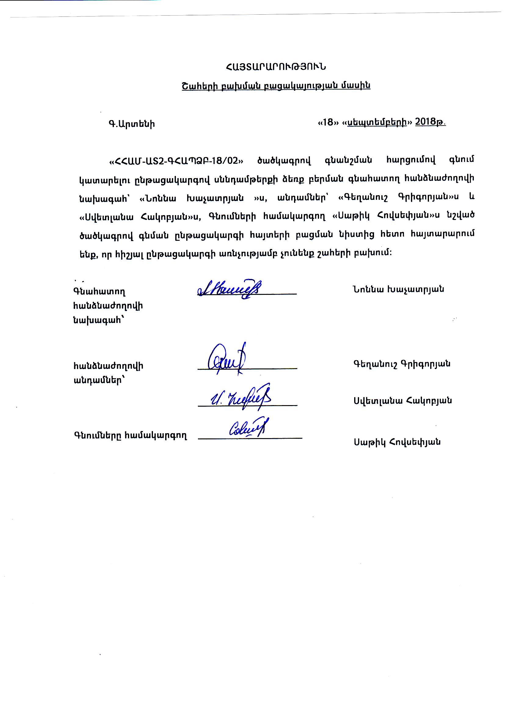 (Հրապարակված է 2018-09-19 14:04:00-ից անժամկետ)