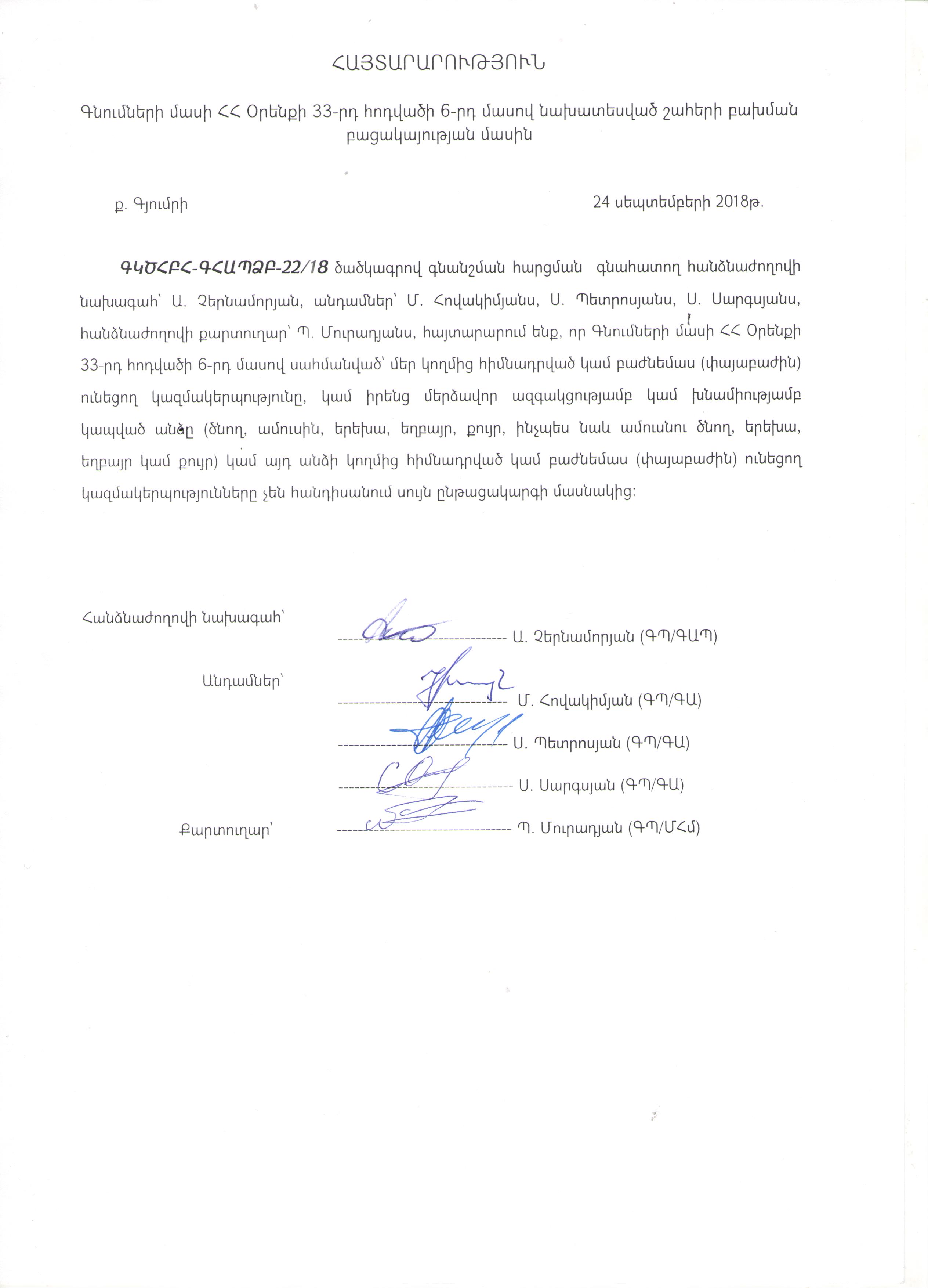 (Հրապարակված է 2018-09-25 10:07:54-ից անժամկետ)