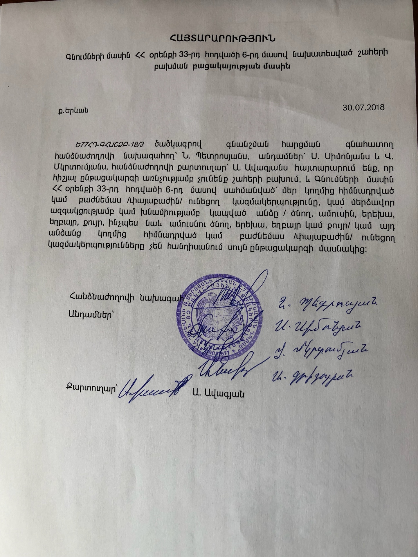 (Հրապարակված է 2018-07-31 15:53:42-ից անժամկետ)