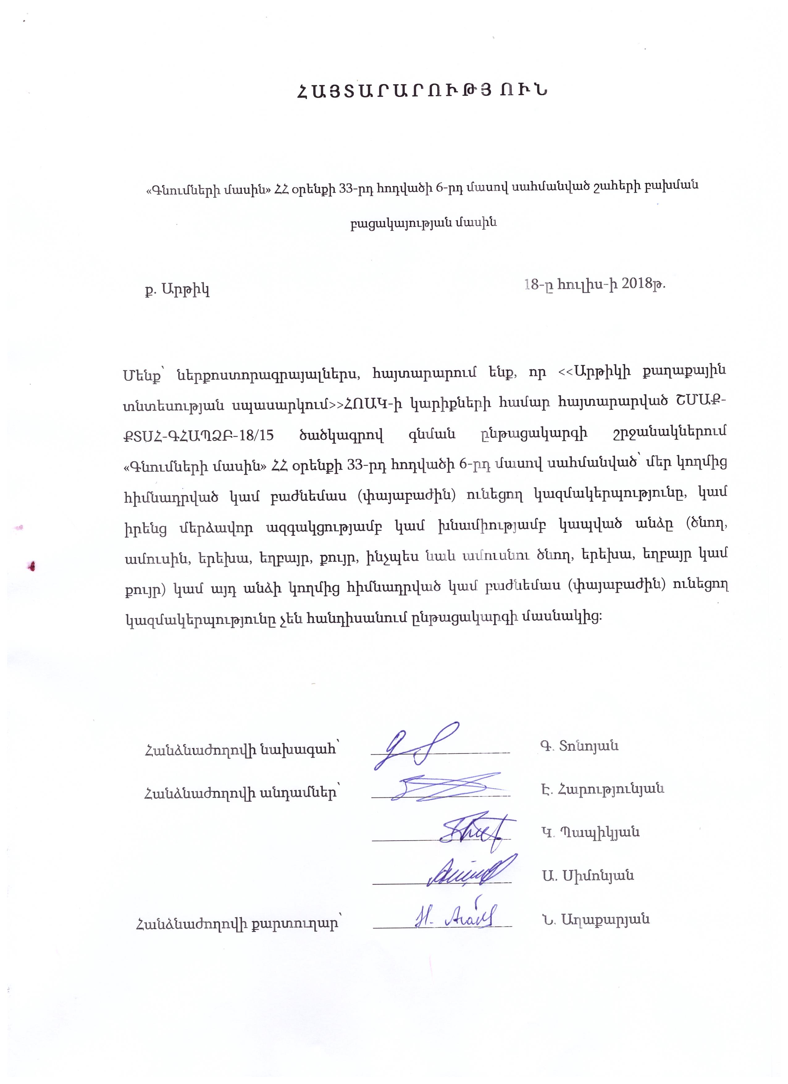 (Հրապարակված է 2018-07-18 17:35:59-ից անժամկետ)