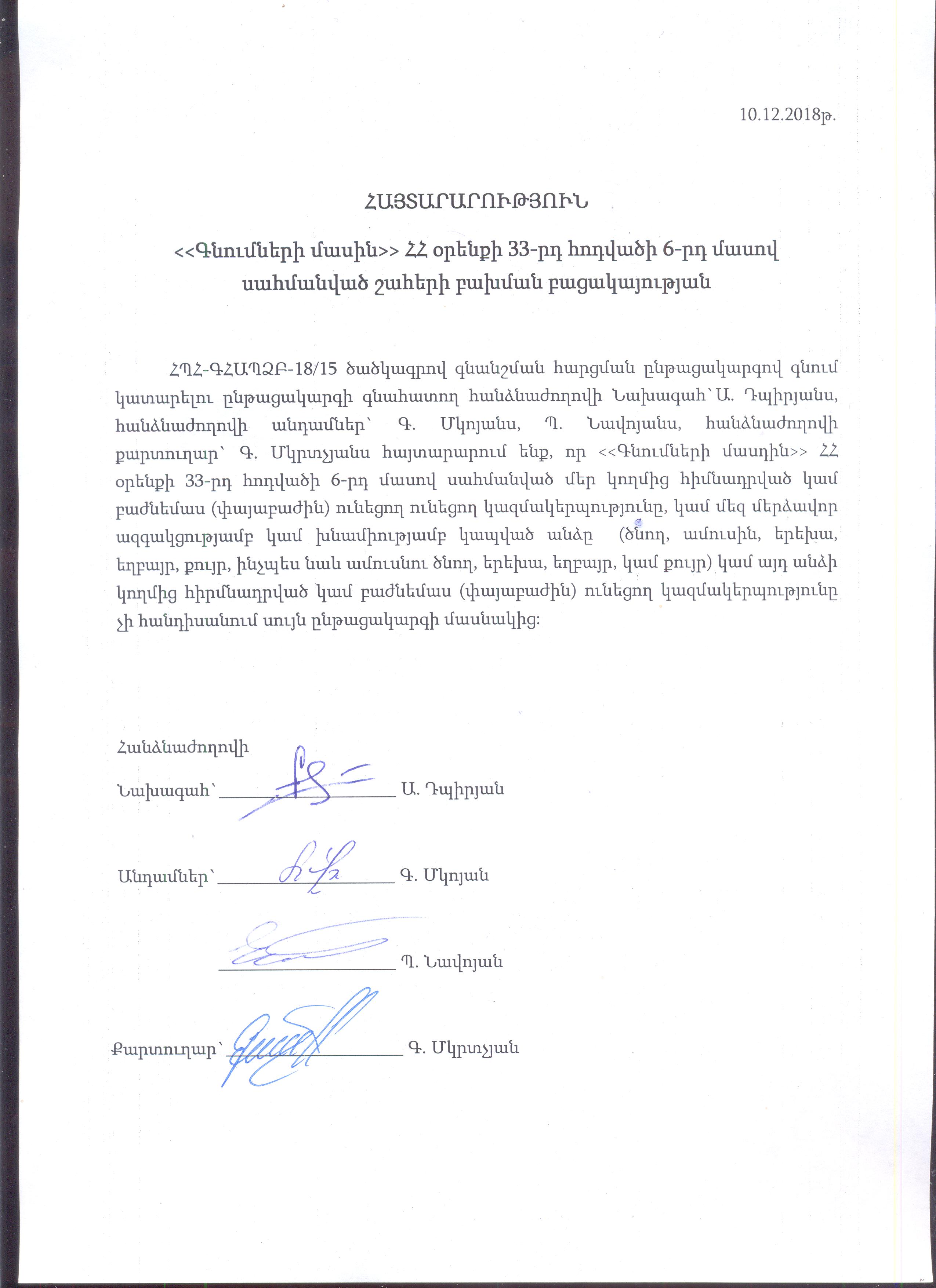 (Հրապարակված է 2018-12-12 17:31:48-ից անժամկետ)
