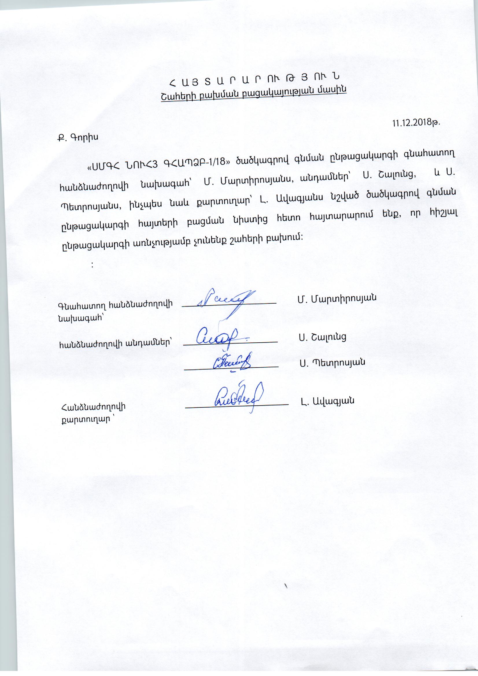 (Հրապարակված է 2018-12-12 17:42:52-ից անժամկետ)