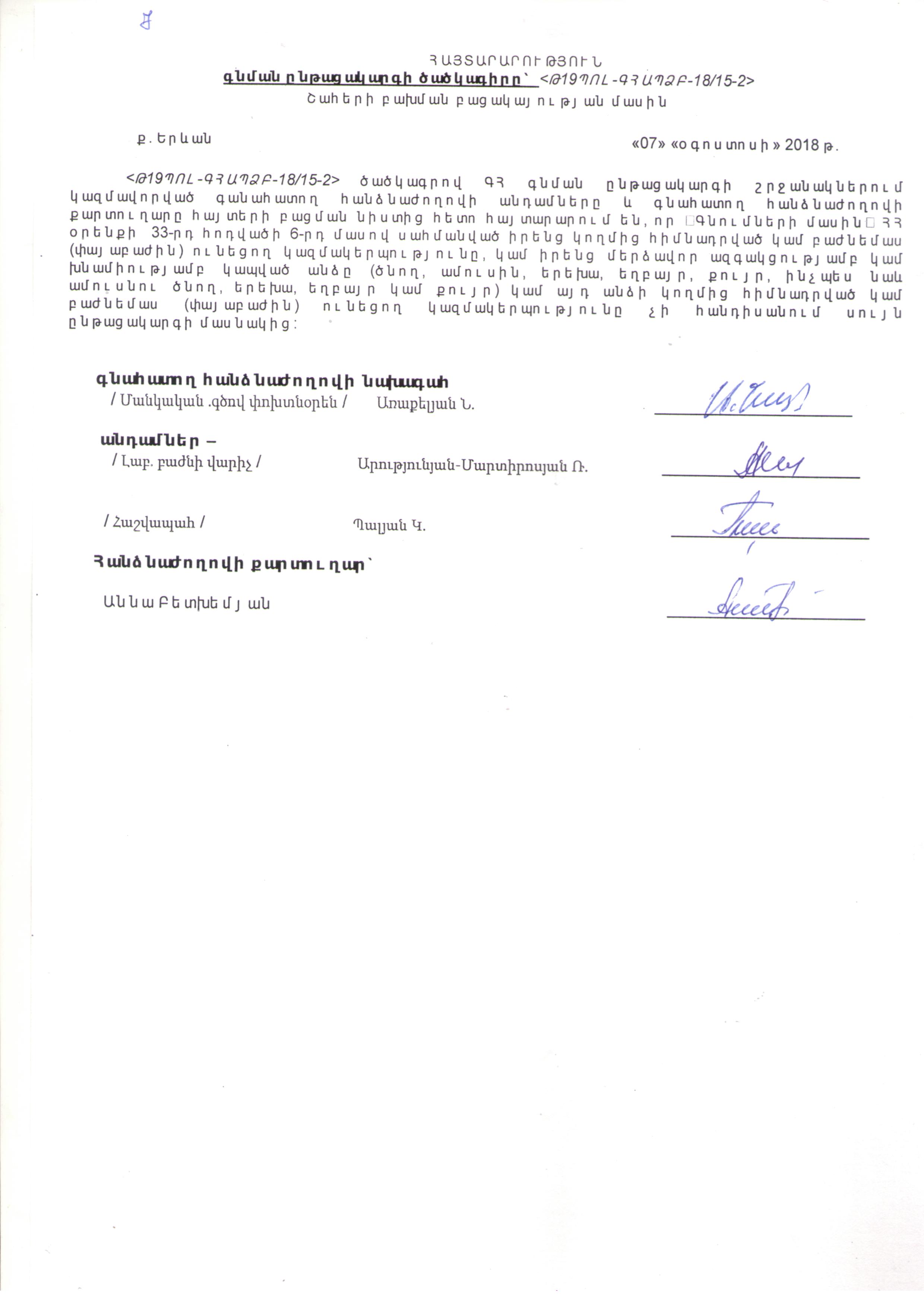 (Հրապարակված է 2018-08-08 15:01:41-ից անժամկետ)