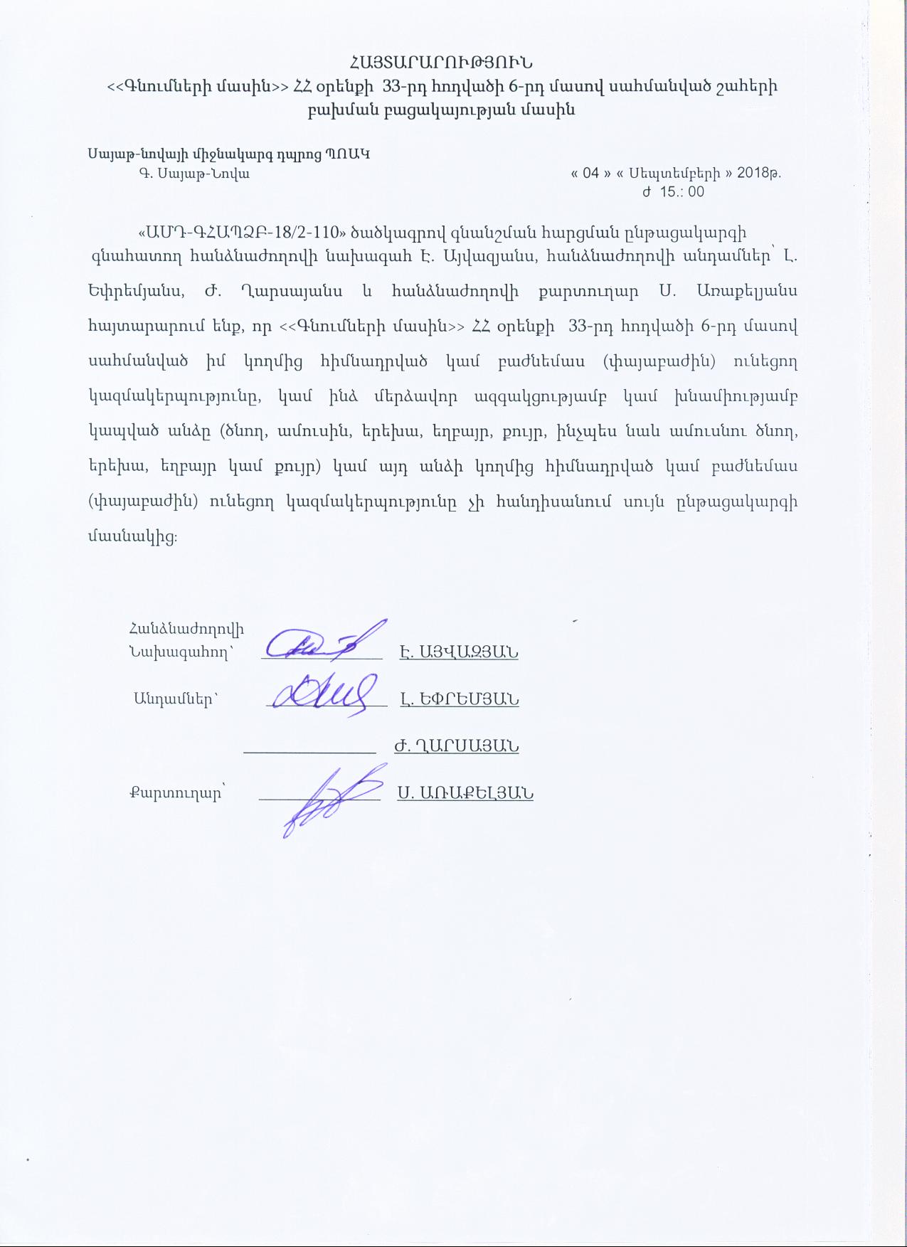 (Հրապարակված է 2018-09-06 09:50:52-ից անժամկետ)