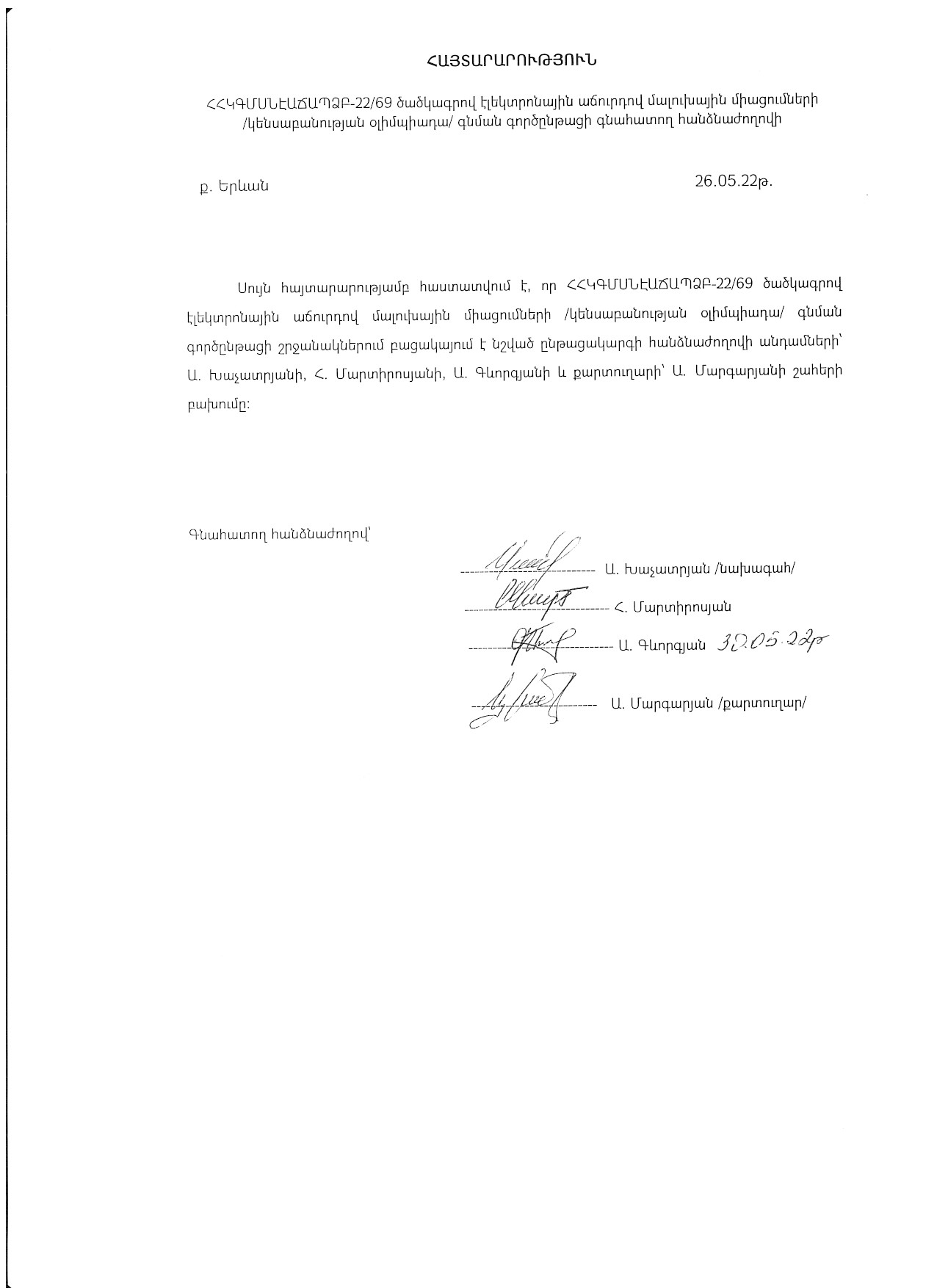 (Հրապարակված է 2022-05-30 11:15:26-ից անժամկետ)