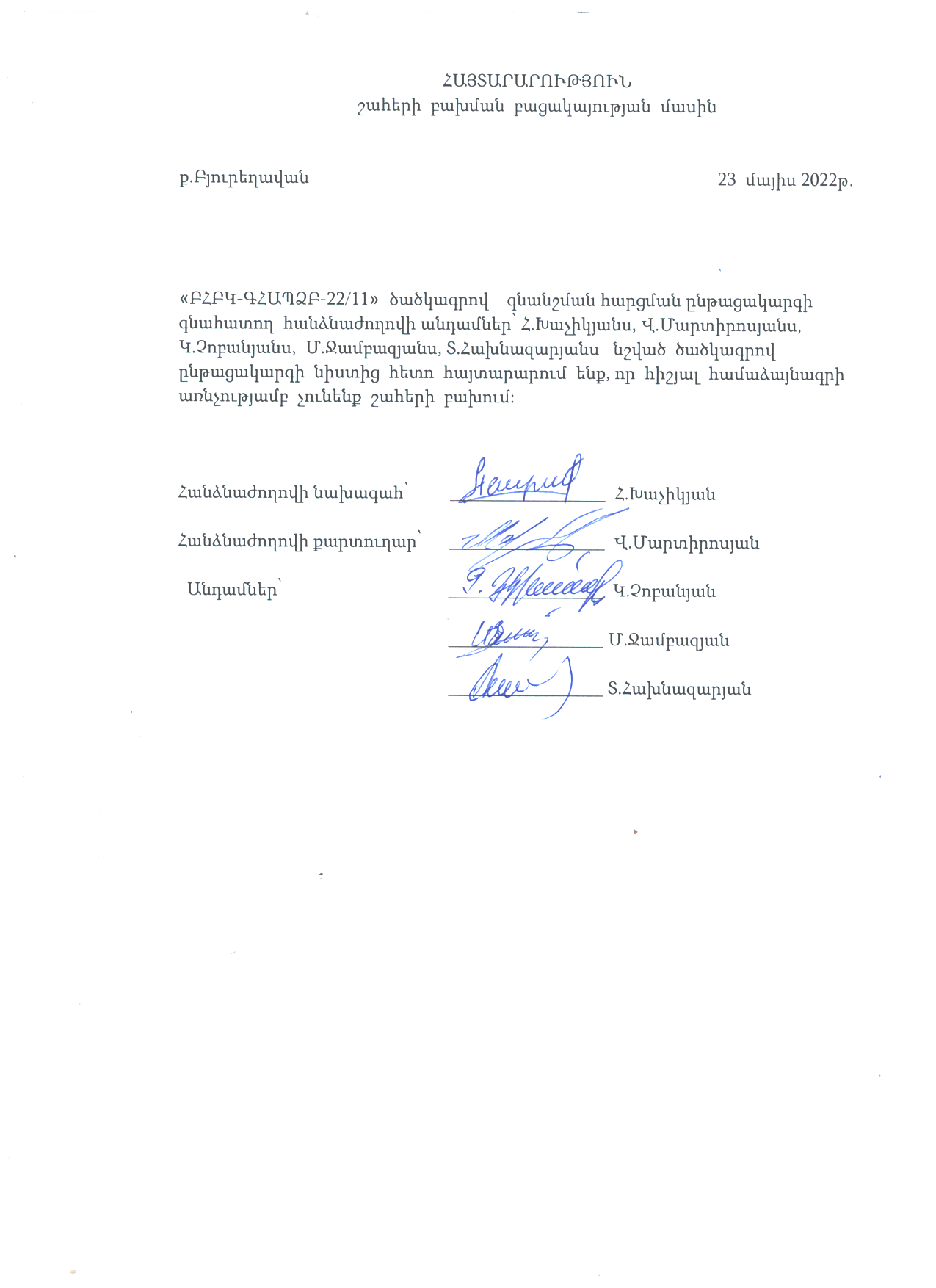 (Հրապարակված է 2022-05-23 17:20:06-ից անժամկետ)