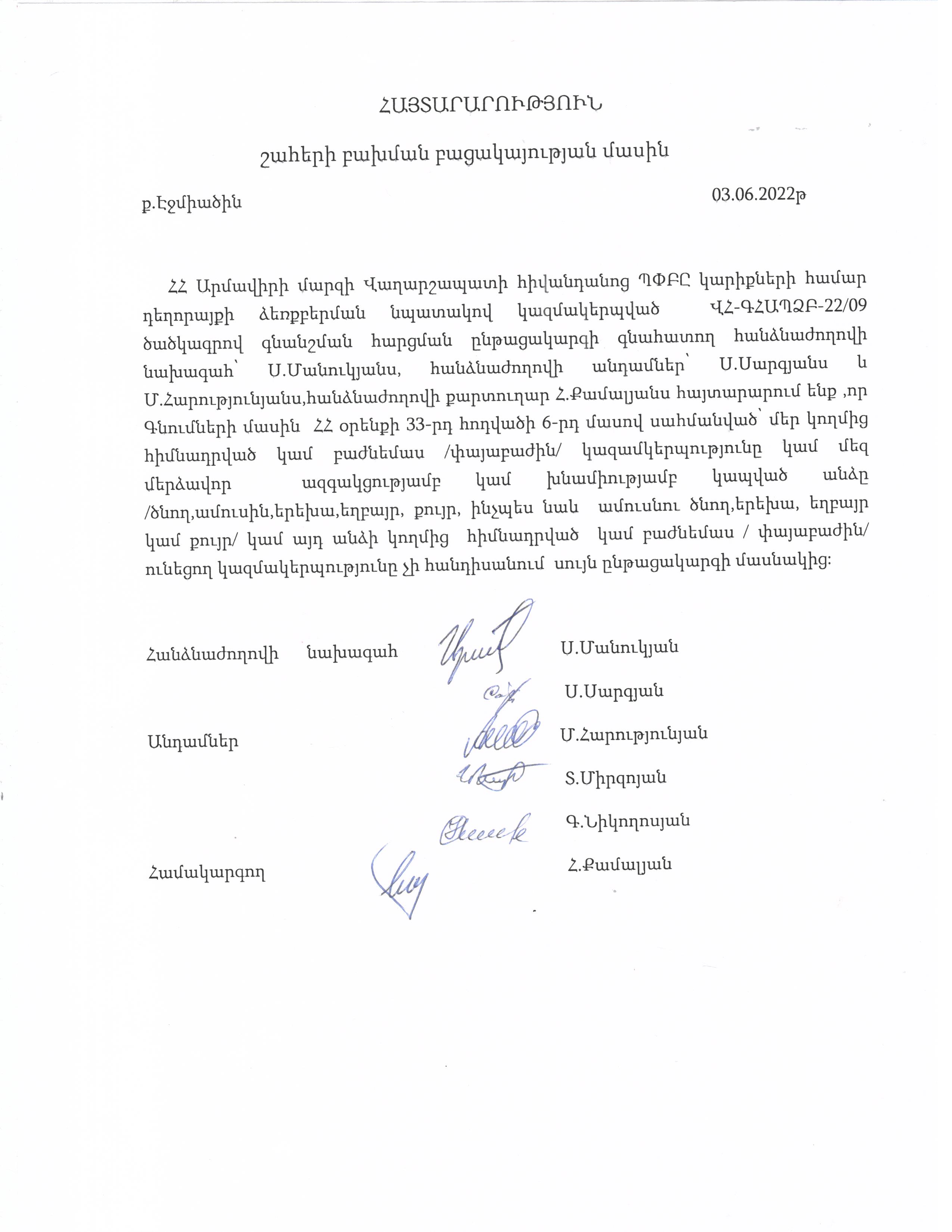 (Հրապարակված է 2022-06-07 10:37:07-ից անժամկետ)