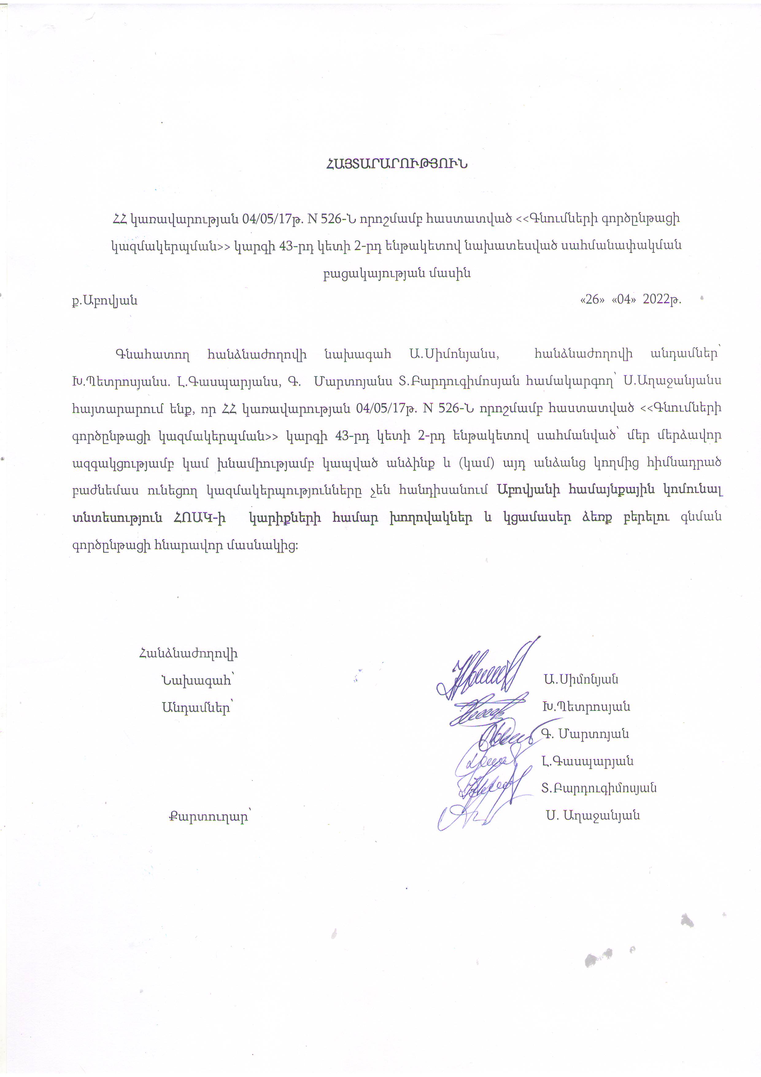 (Հրապարակված է 2022-05-02 10:55:04-ից անժամկետ)