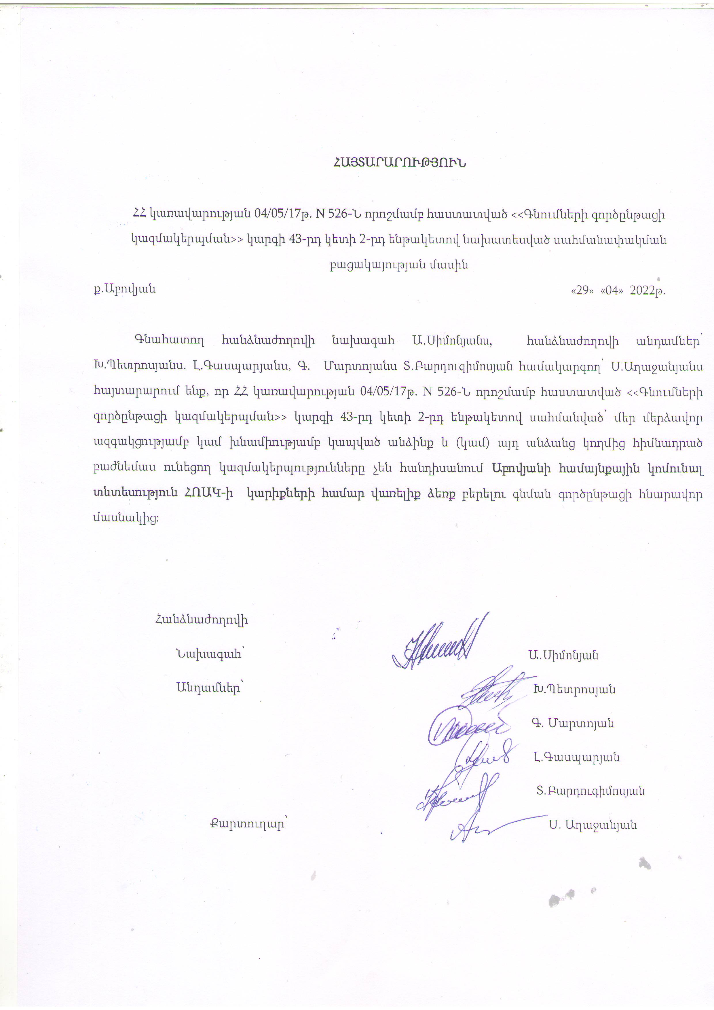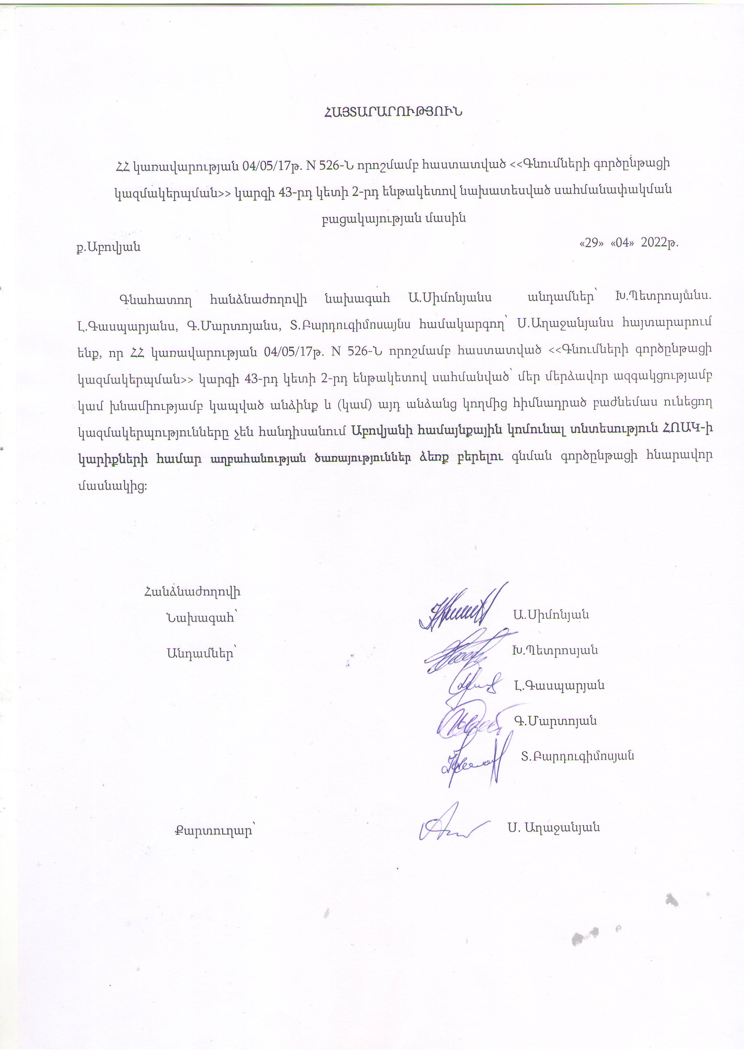 (Հրապարակված է 2022-05-03 10:05:20-ից անժամկետ)