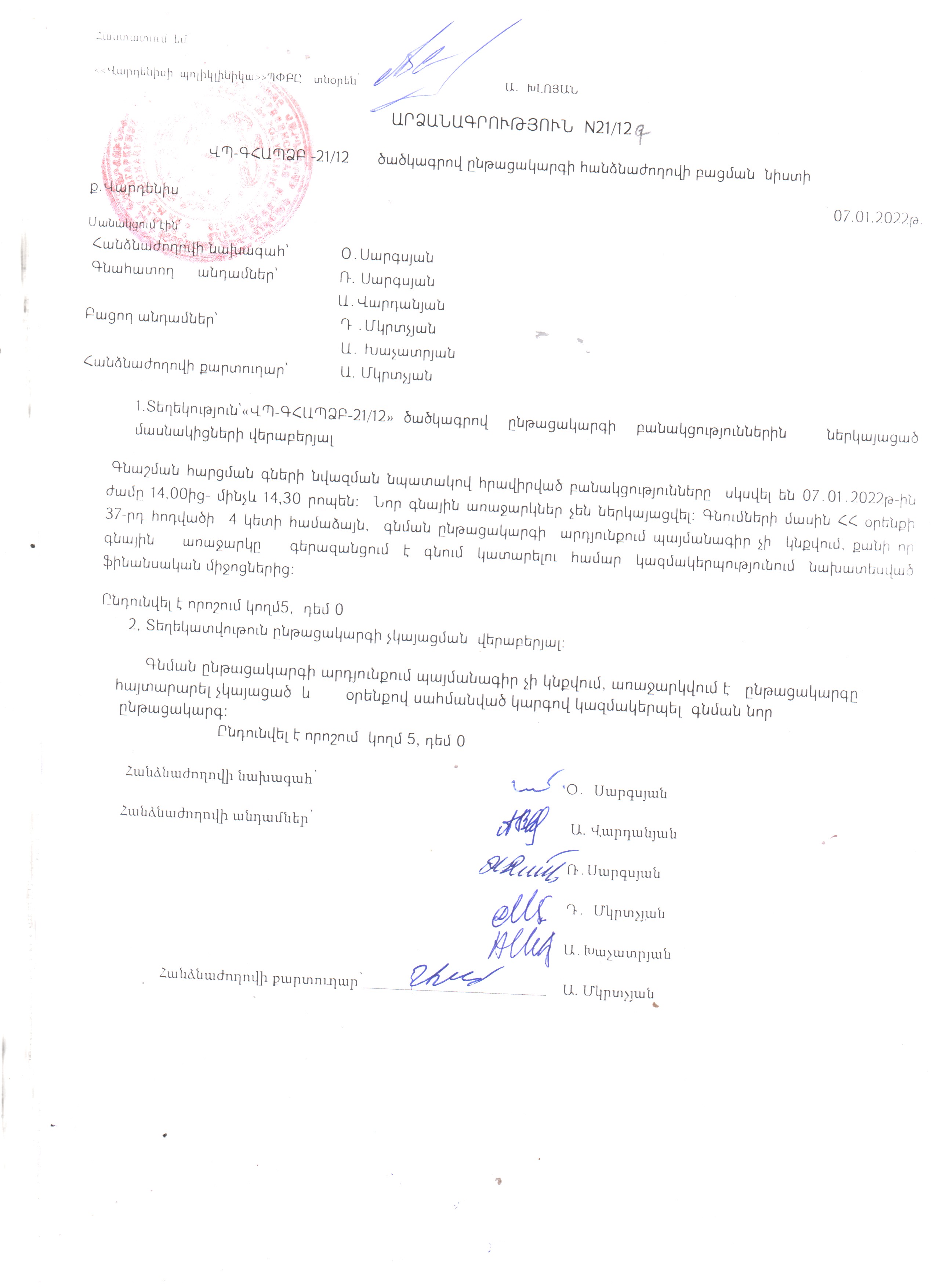 (Հրապարակված է 2022-01-10 17:37:56-ից անժամկետ)