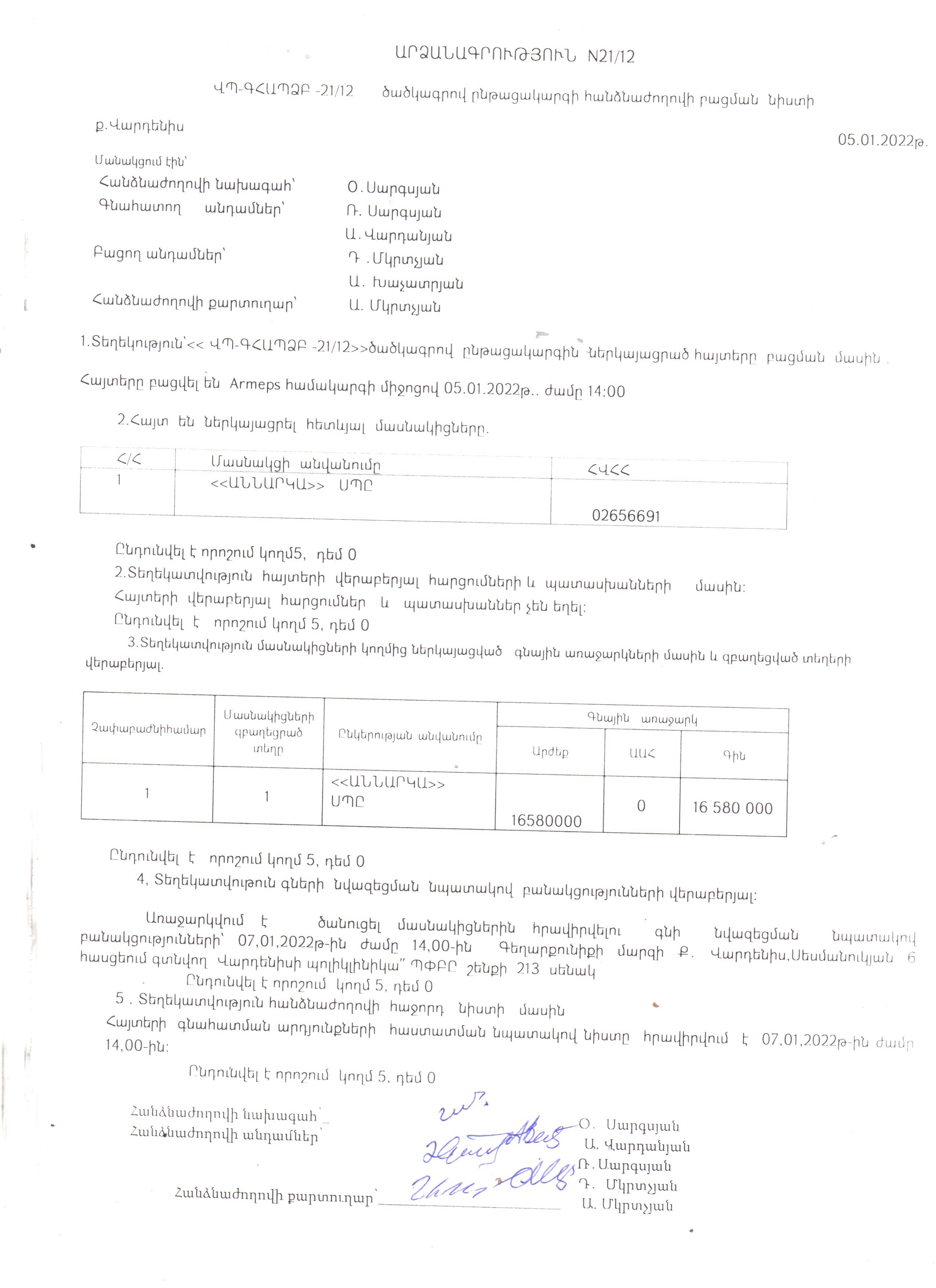 (Հրապարակված է 2022-01-07 16:38:40-ից անժամկետ)