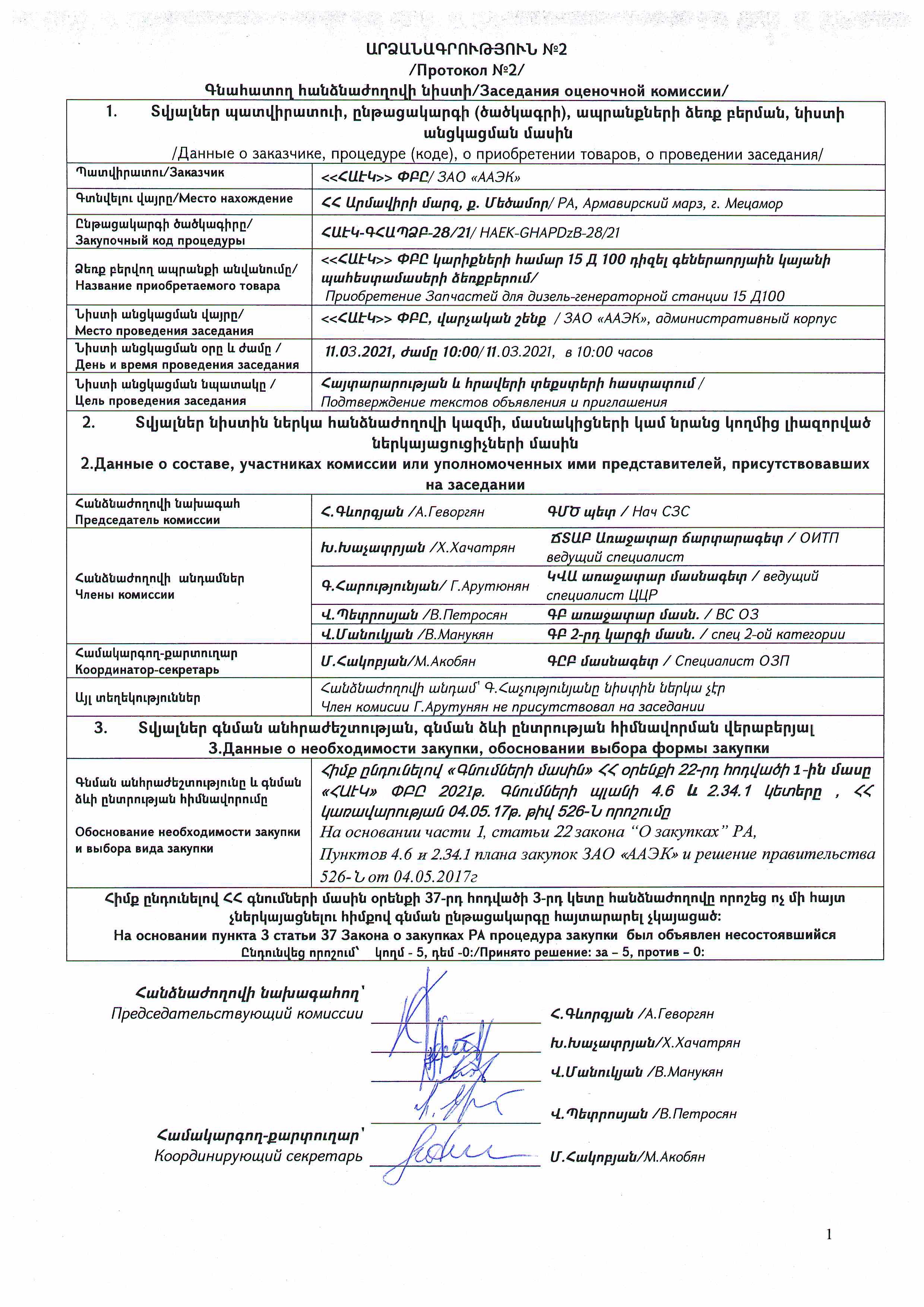 (Հրապարակված է 2021-03-11 12:46:29-ից անժամկետ)