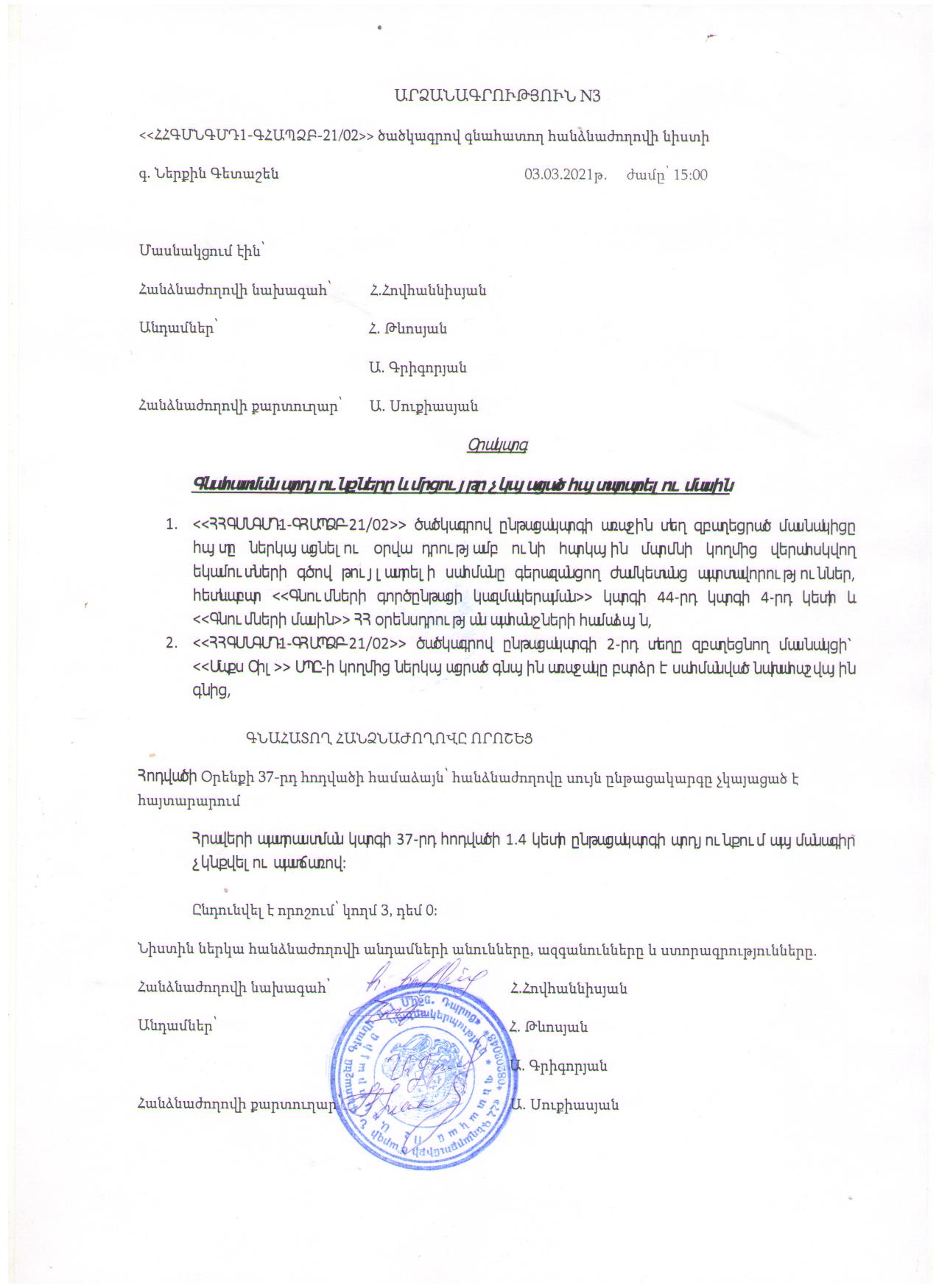 (Հրապարակված է 2021-03-04 14:21:01-ից անժամկետ)