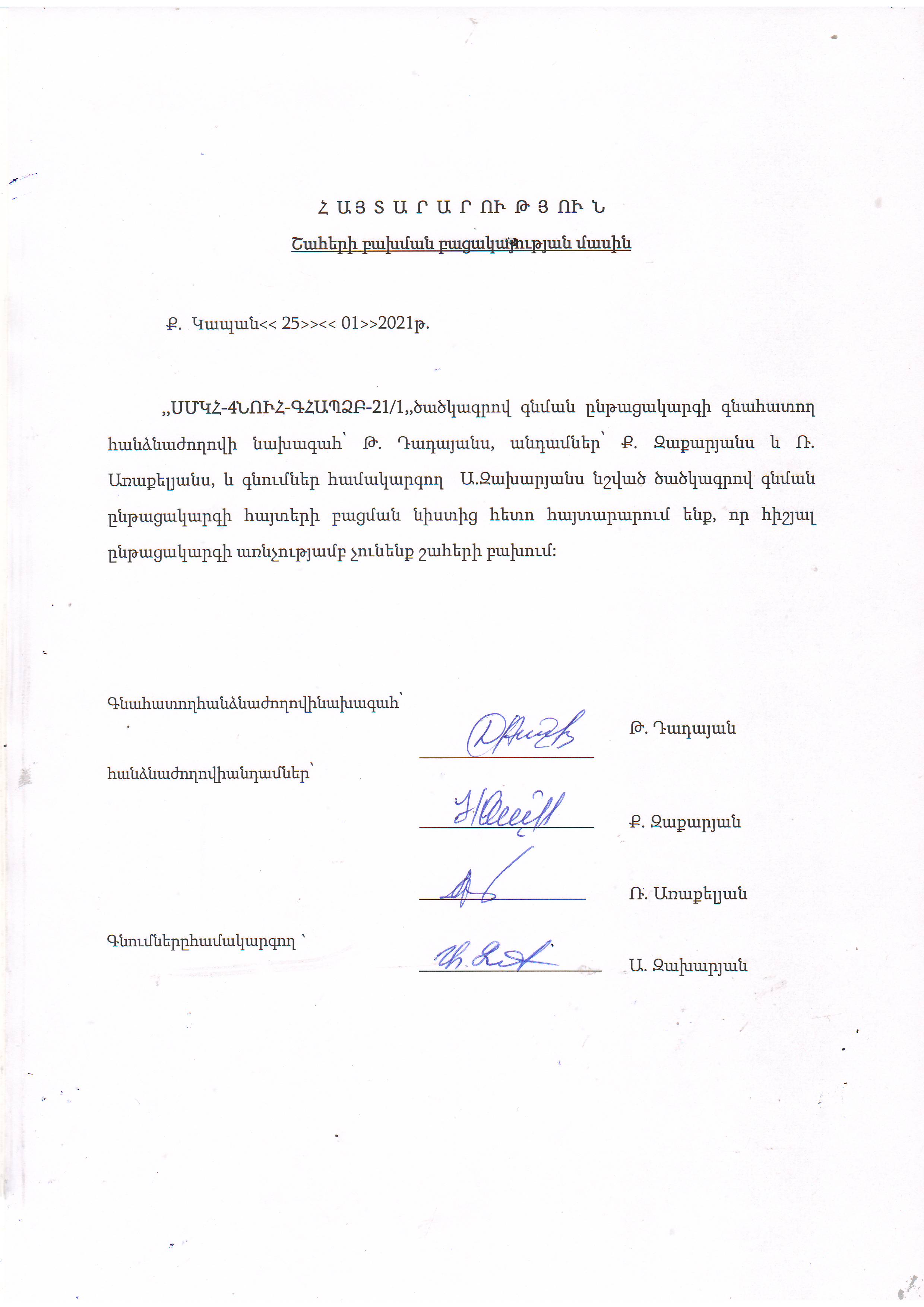 (Հրապարակված է 2021-01-29 20:35:26-ից անժամկետ)