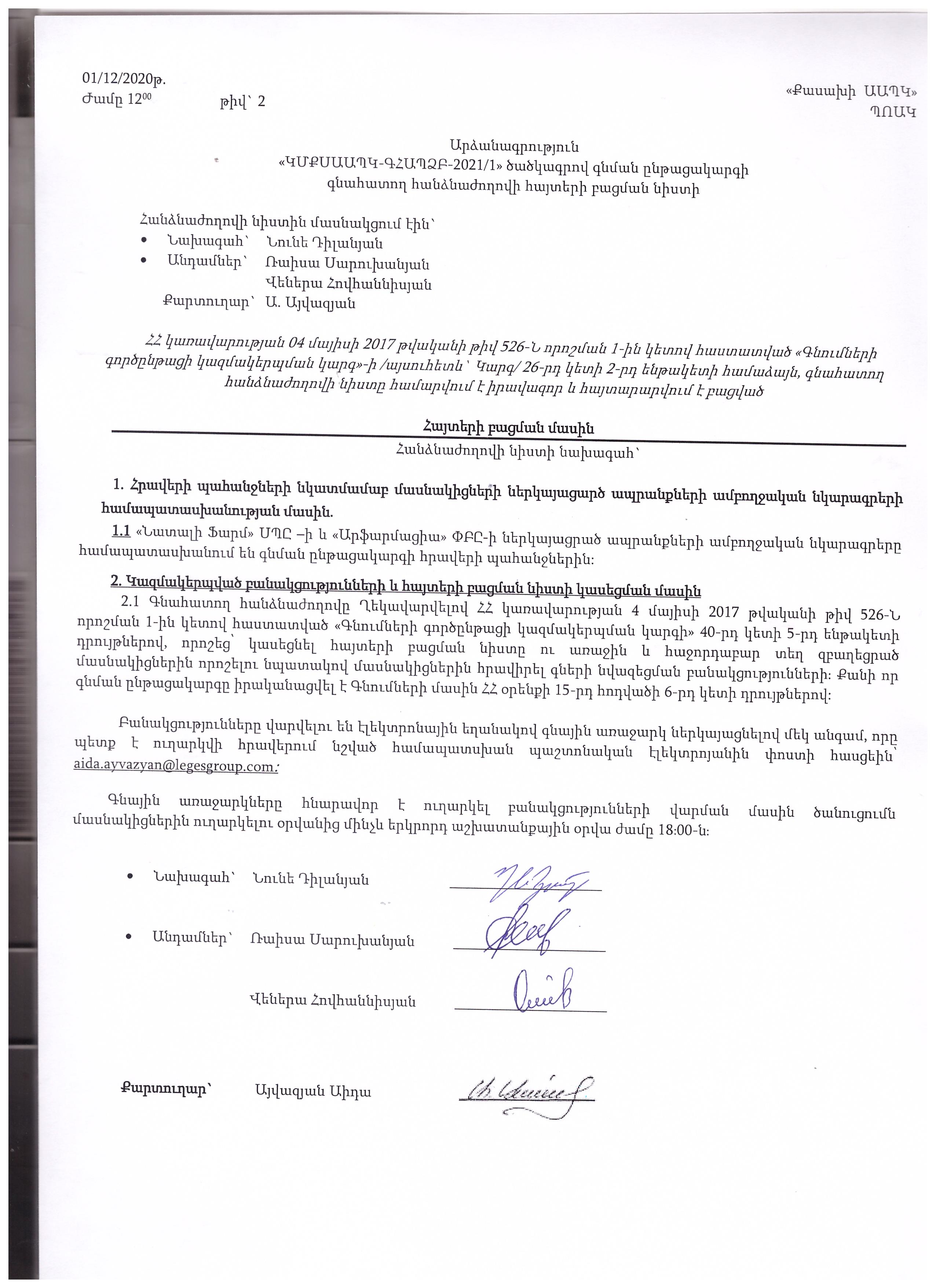 (Հրապարակված է 2020-12-03 19:37:20-ից անժամկետ)