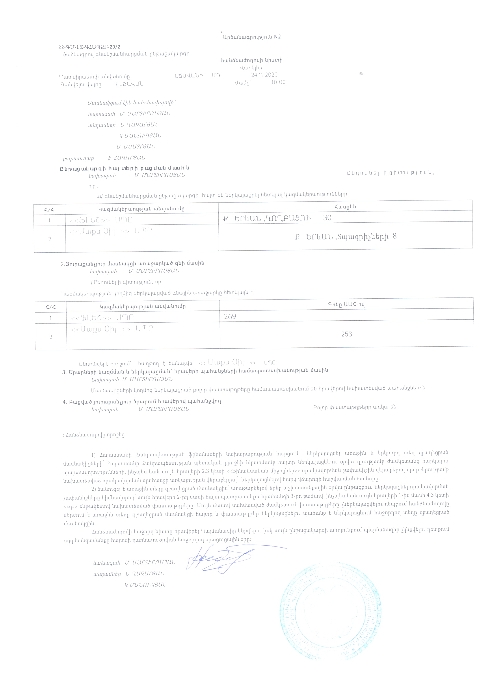 (Հրապարակված է 2020-11-26 11:57:28-ից անժամկետ)