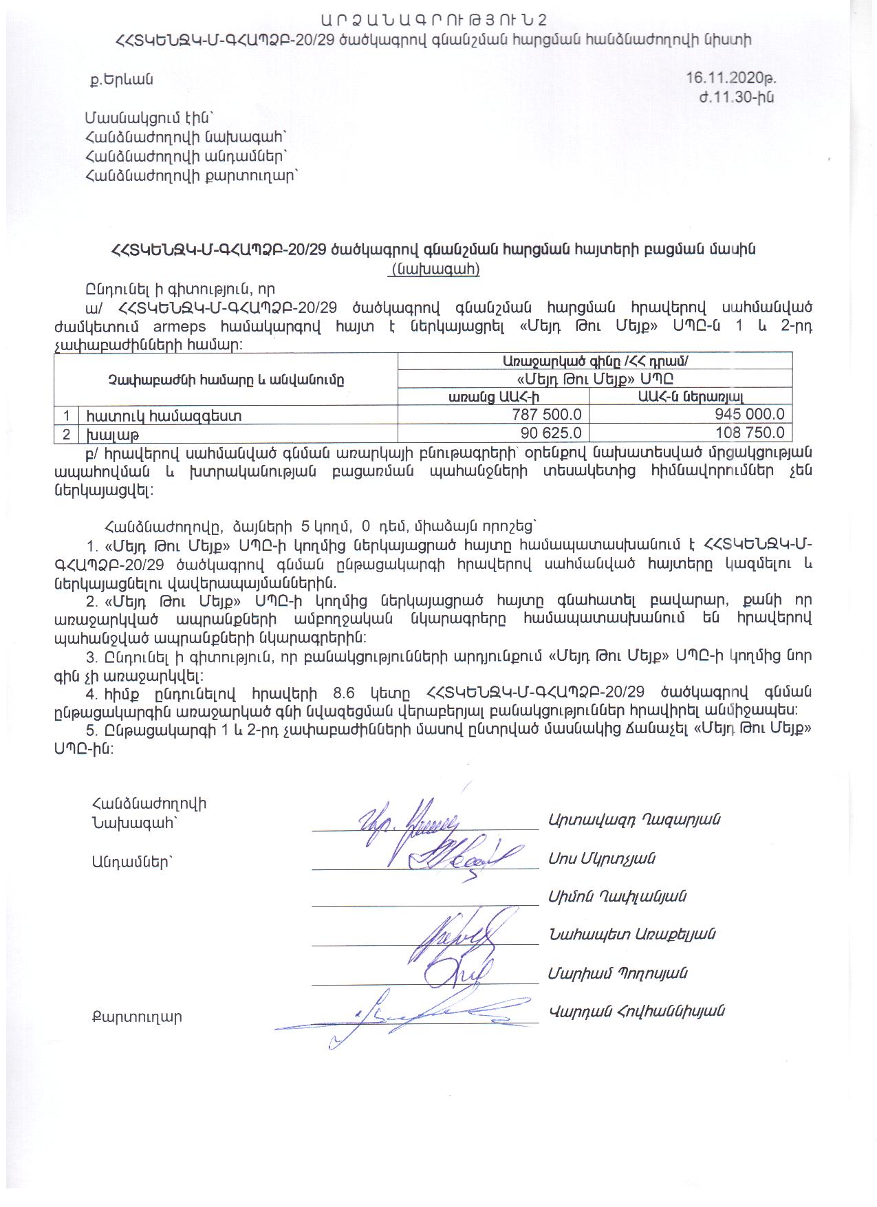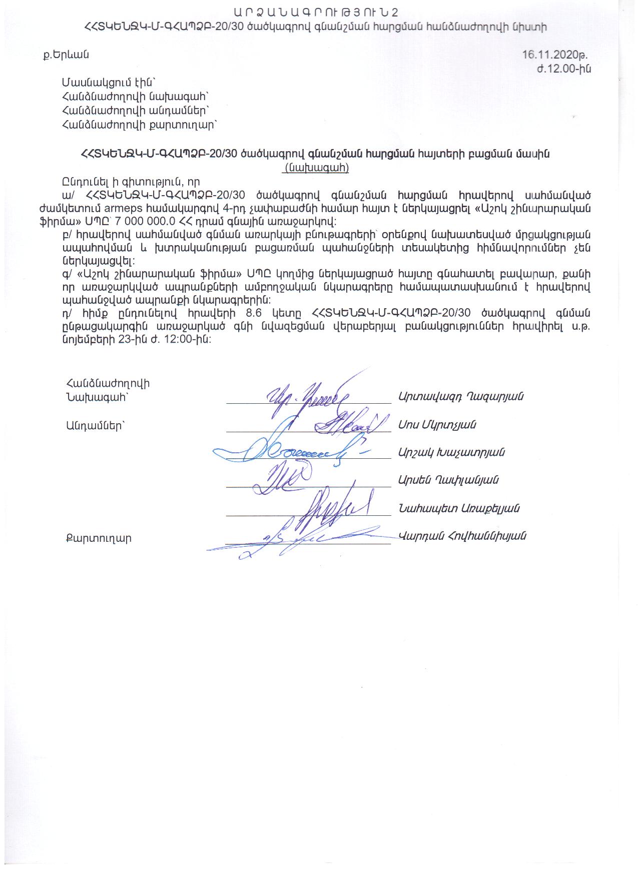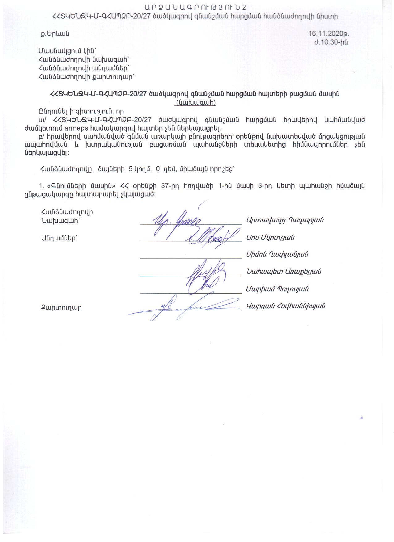 (Հրապարակված է 2020-11-24 10:16:29-ից անժամկետ)