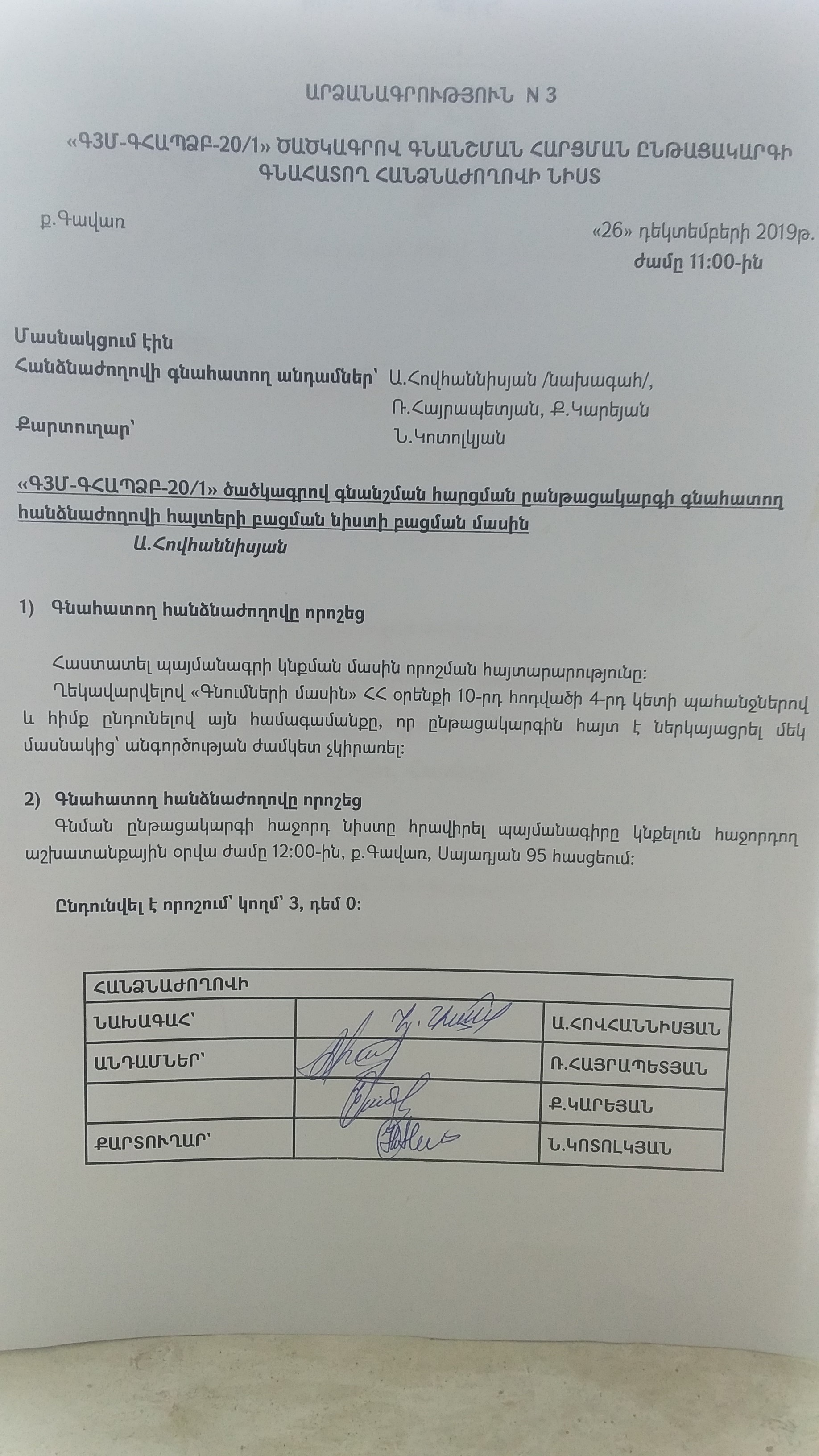 (Հրապարակված է 2019-12-27 13:12:59-ից անժամկետ)