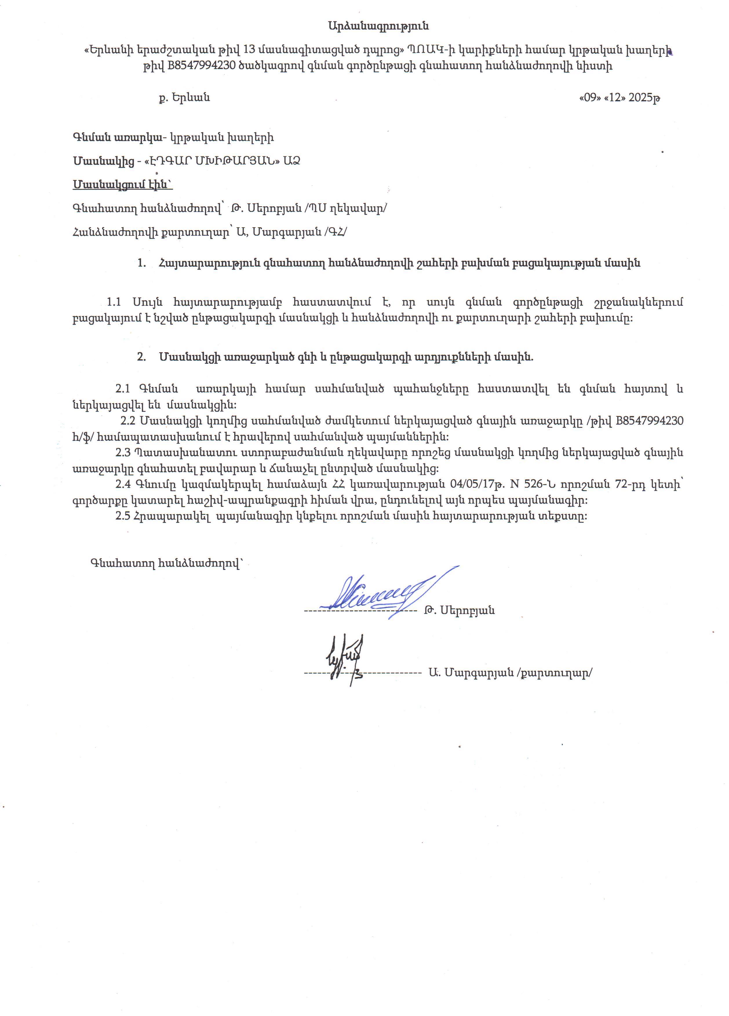 (Հրապարակված է 2025-12-12 14:11:49-ից անժամկետ)