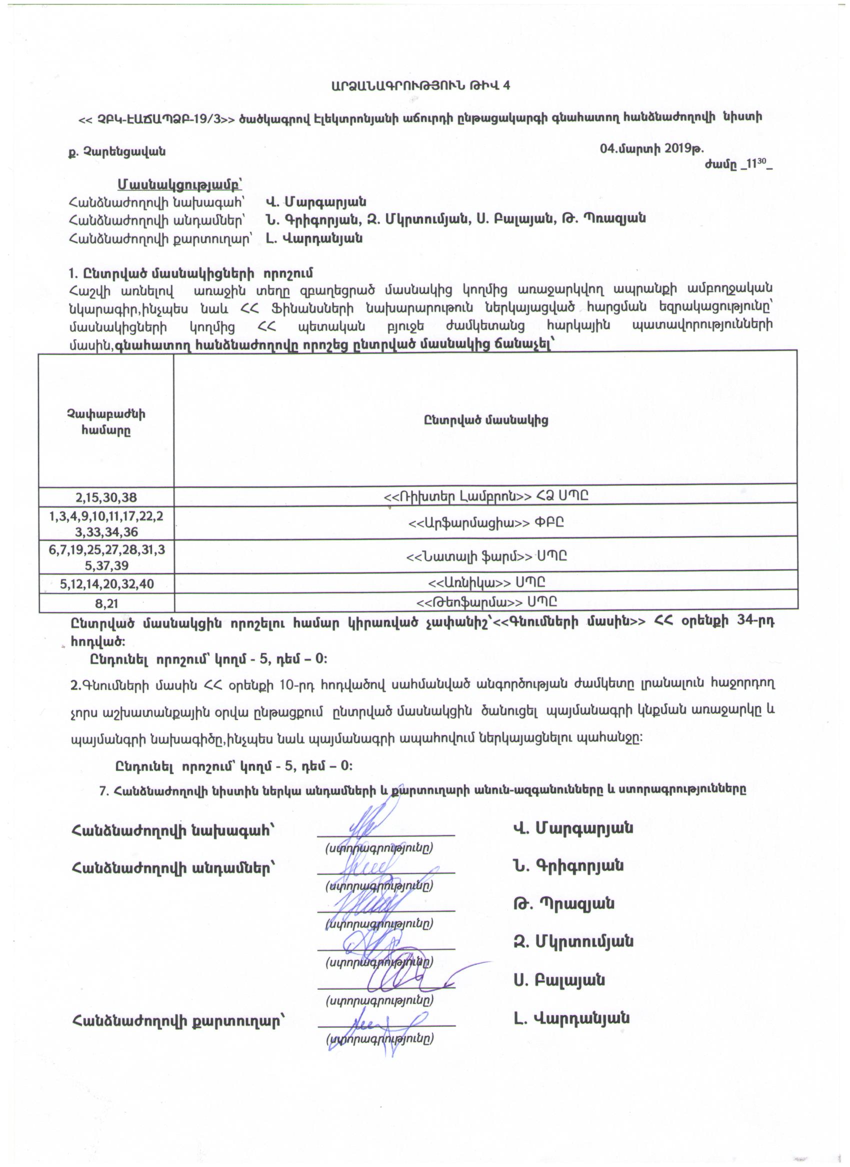 (Հրապարակված է 2019-03-05 16:25:00-ից անժամկետ)