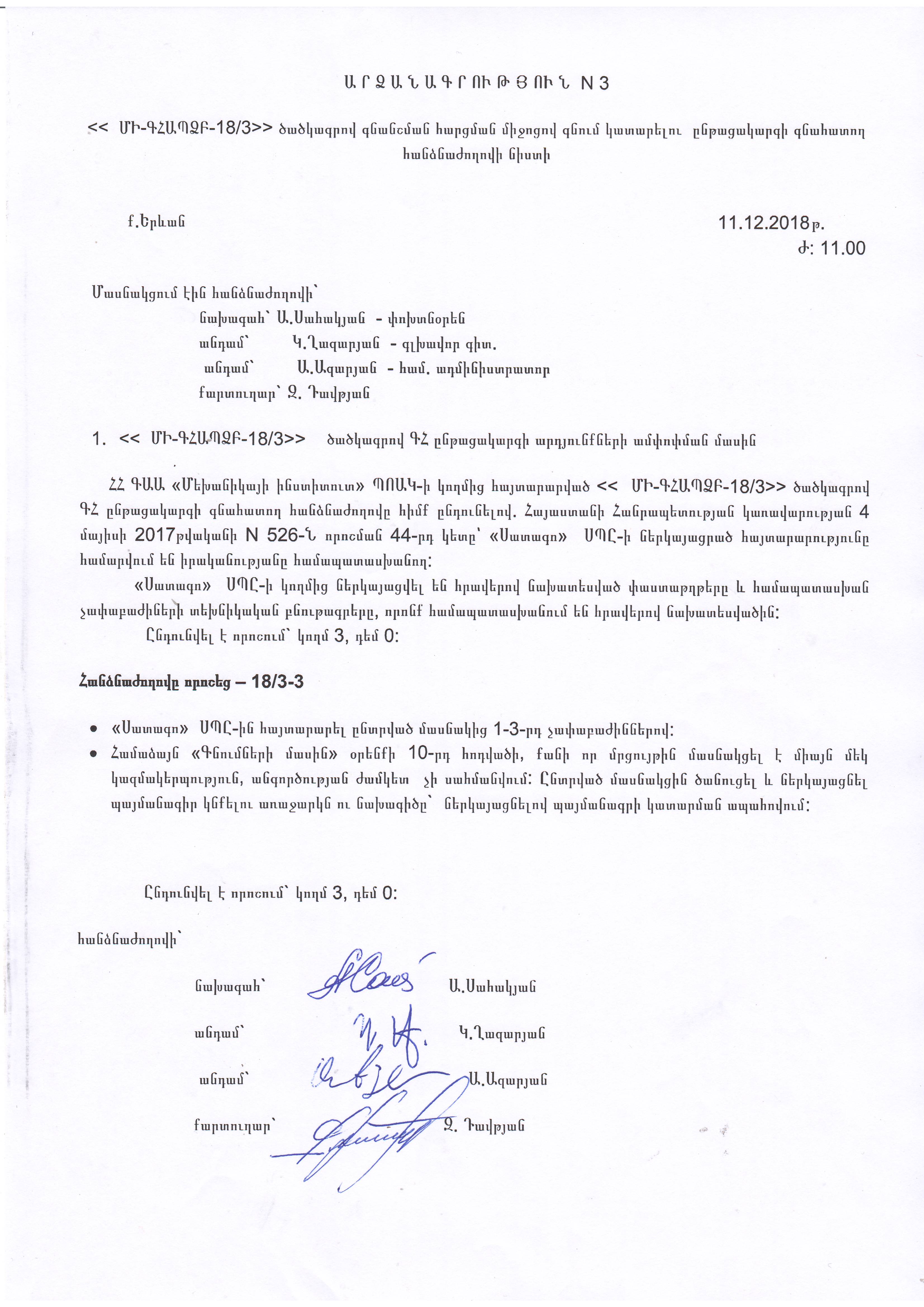 (Հրապարակված է 2018-12-11 16:14:40-ից անժամկետ)