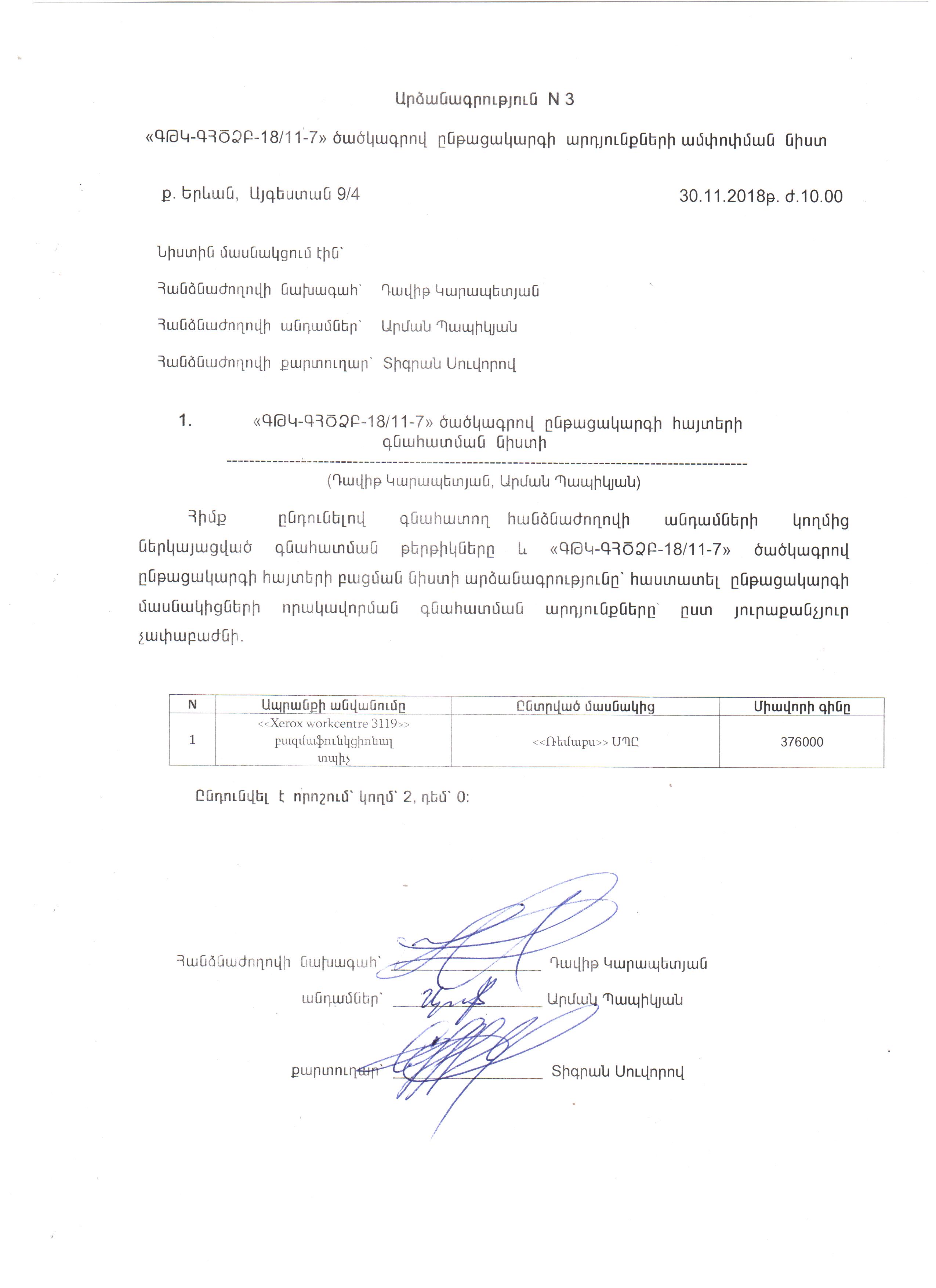 (Հրապարակված է 2018-11-30 17:18:25-ից անժամկետ)
