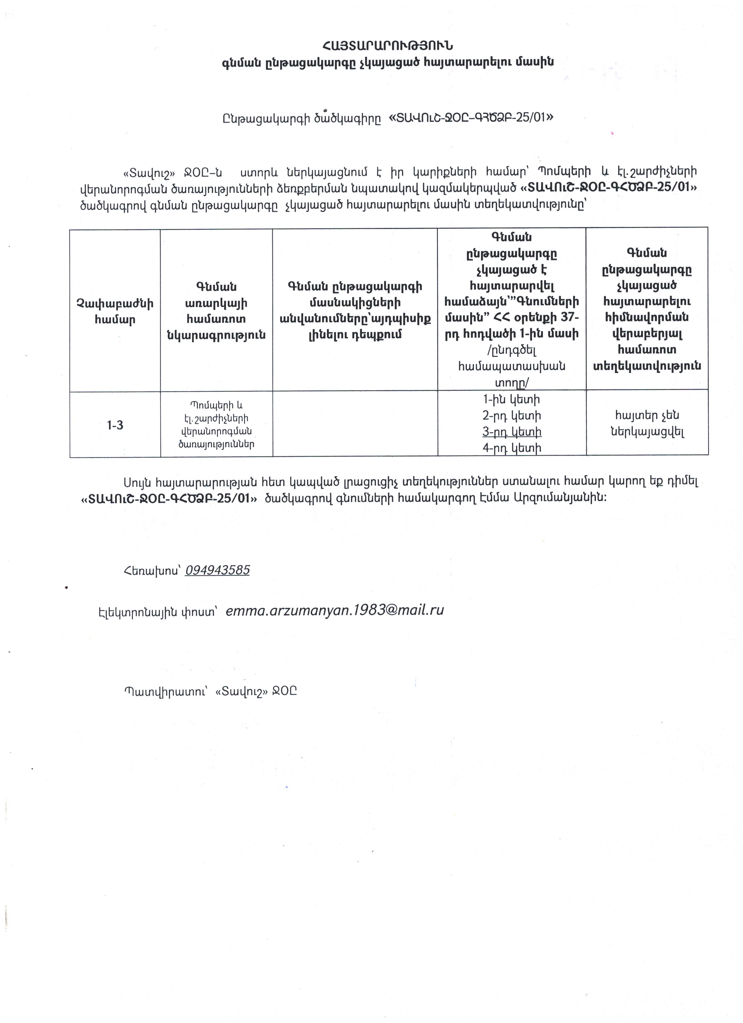 (Հրապարակված է 2025-01-27 11:30:46-ից անժամկետ)