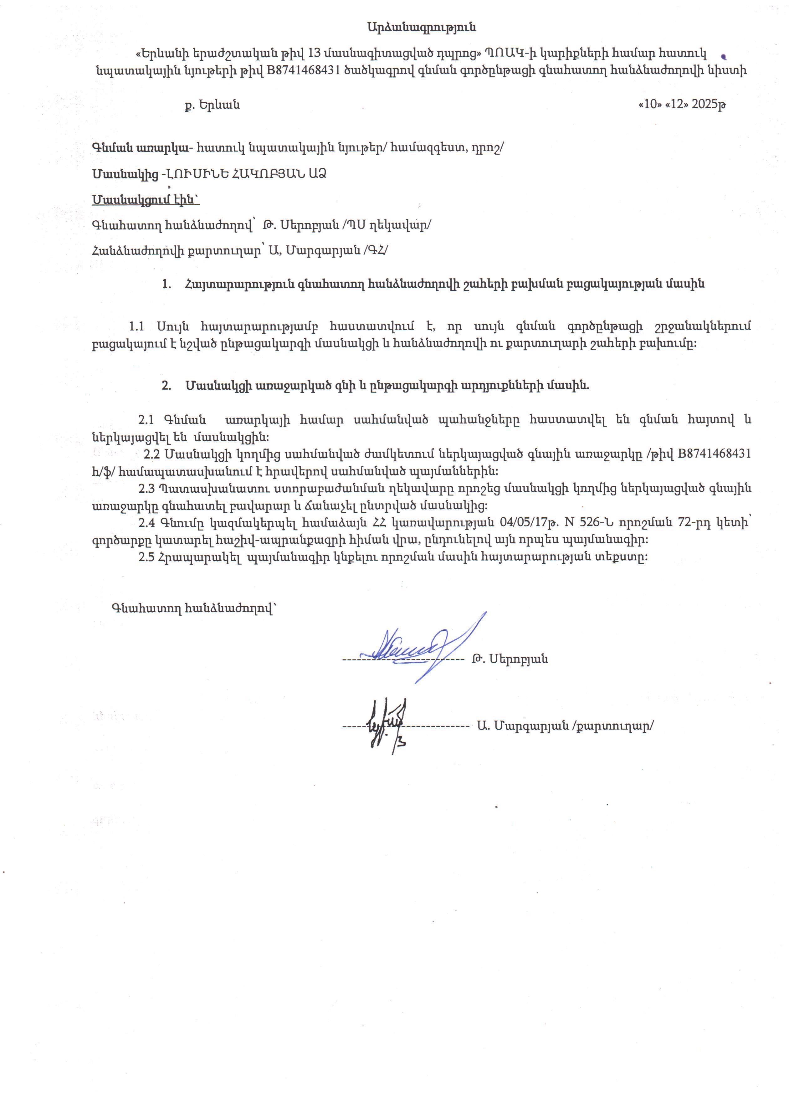 (Հրապարակված է 2025-12-17 15:14:43-ից անժամկետ)