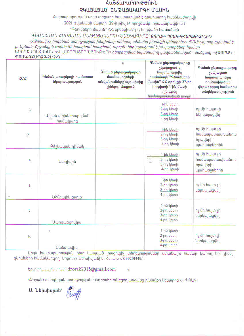 (Հրապարակված է 2021-03-30 12:18:21-ից անժամկետ)