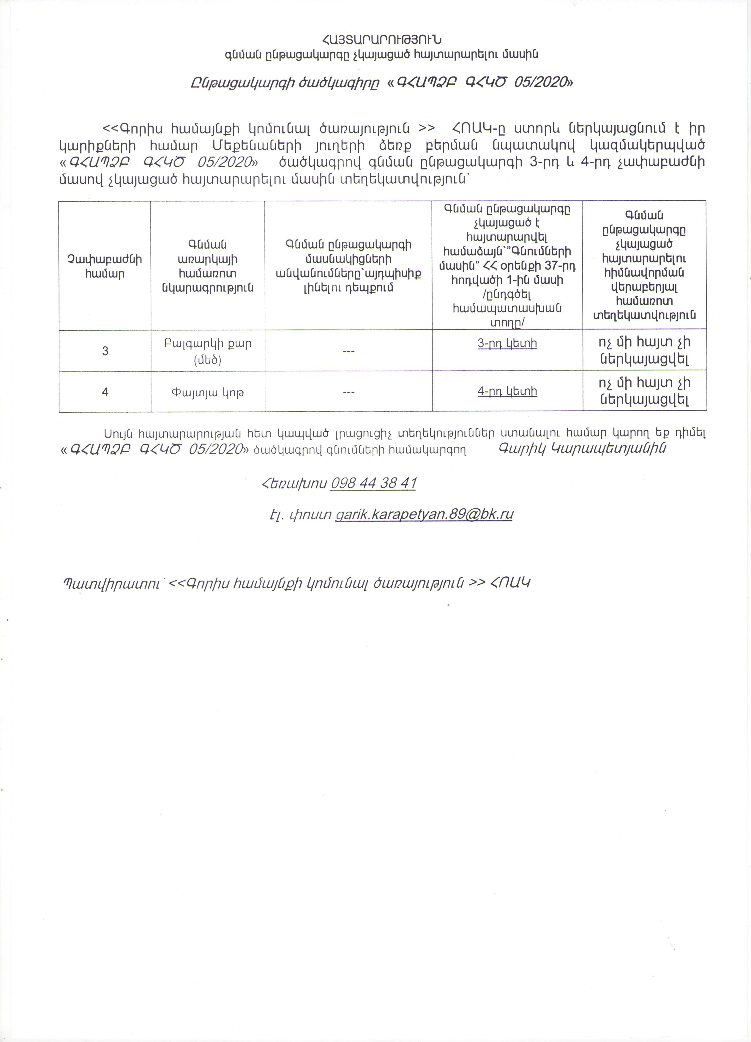(Հրապարակված է 2020-05-04 15:36:15-ից անժամկետ)