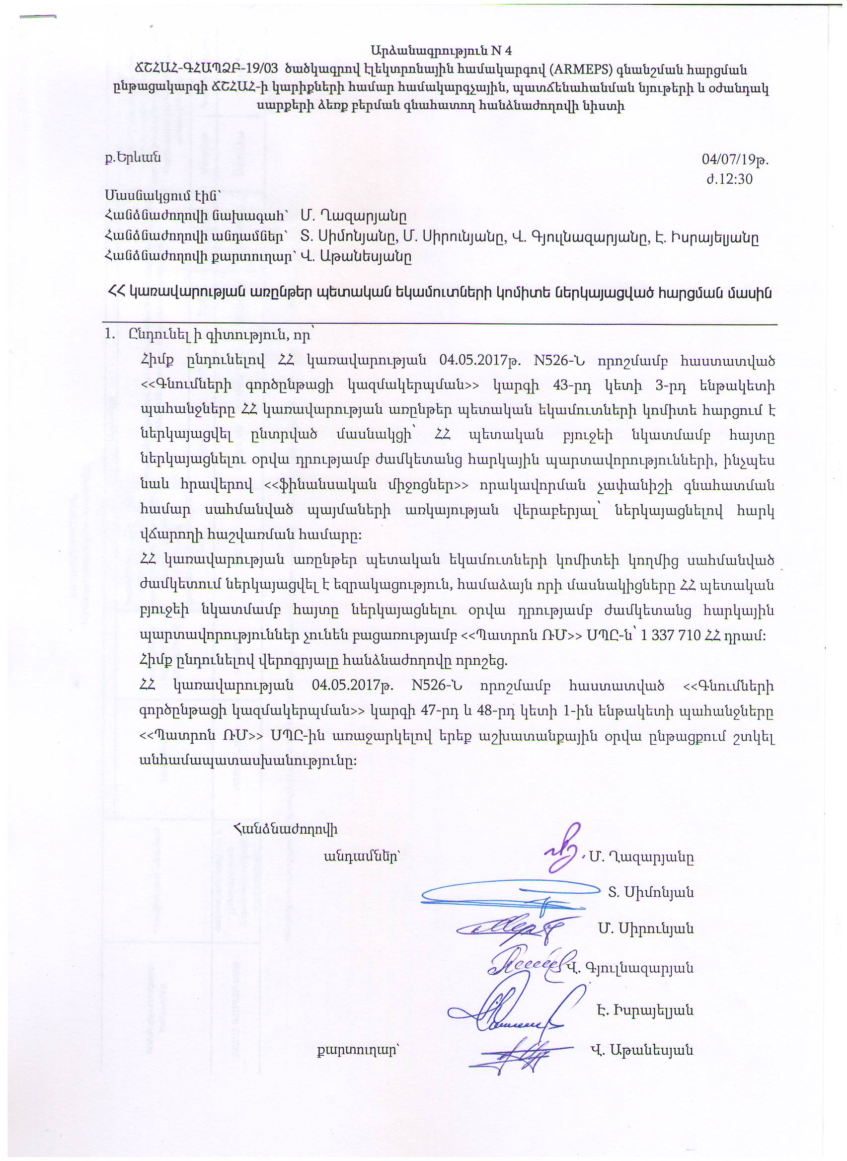 ՀՀ ՊՆ ՆՏԱԴ-ԳՀԱՊՁԲ-7/42 ծածկագրով ընթացակարգի որակավորման փաստաթղթերի գնահատման նիստի արձանագրություն