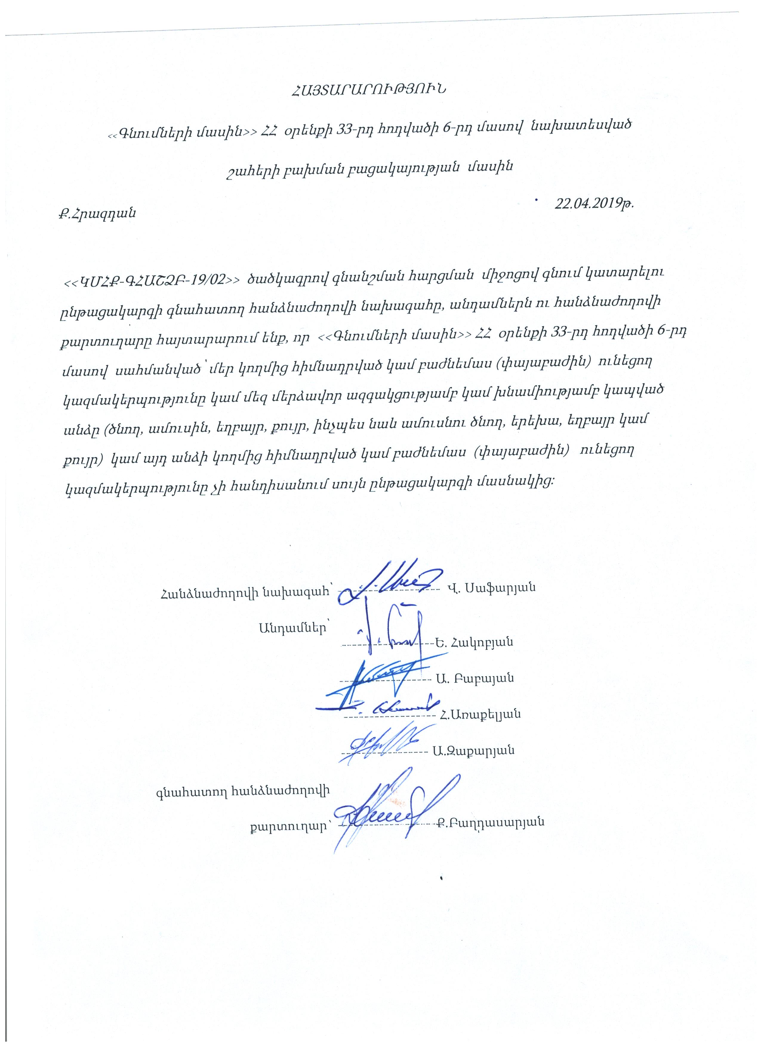 (Հրապարակված է 2019-04-23 15:15:22-ից անժամկետ)