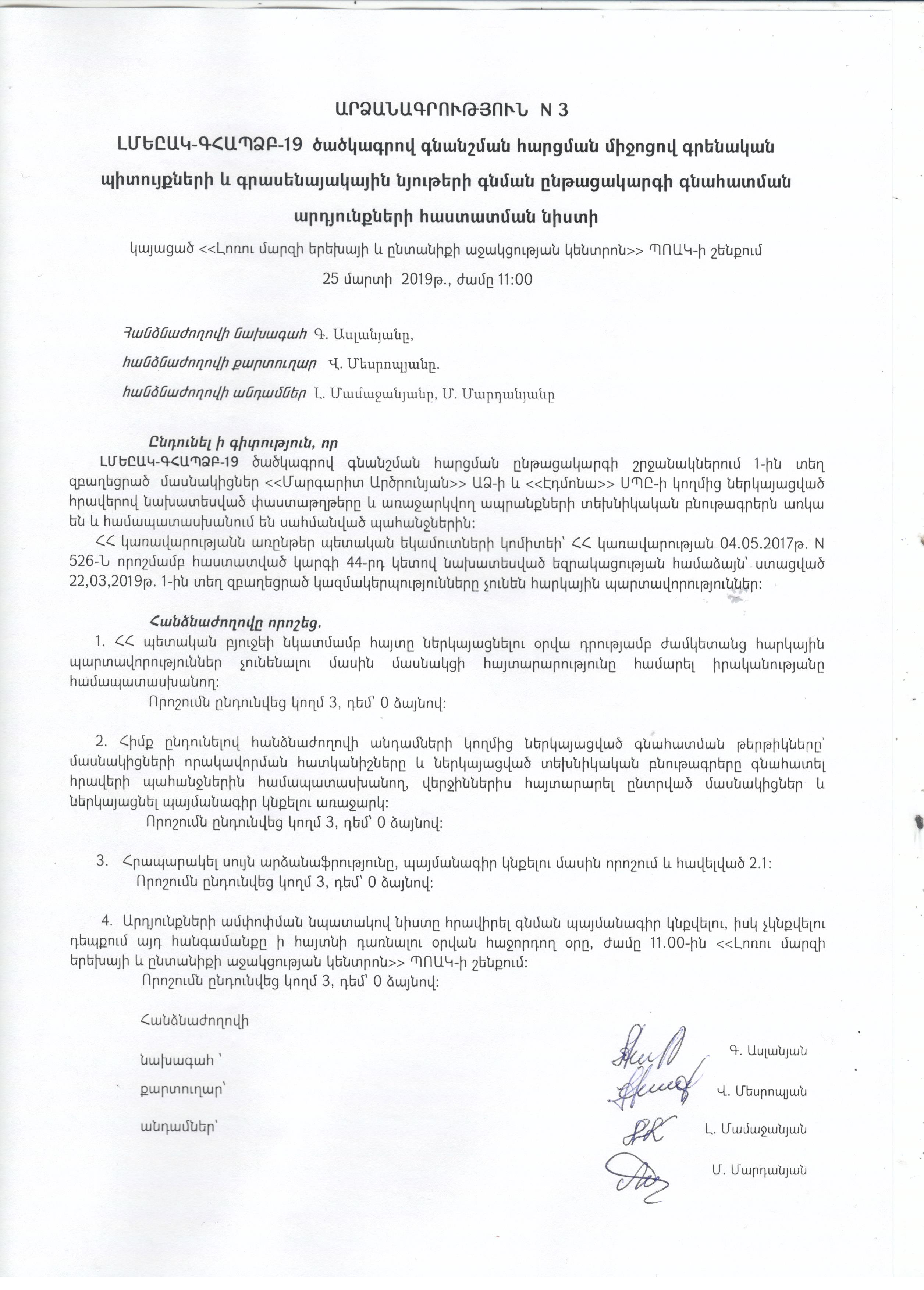 (Հրապարակված է 2019-03-25 16:00:47-ից անժամկետ)