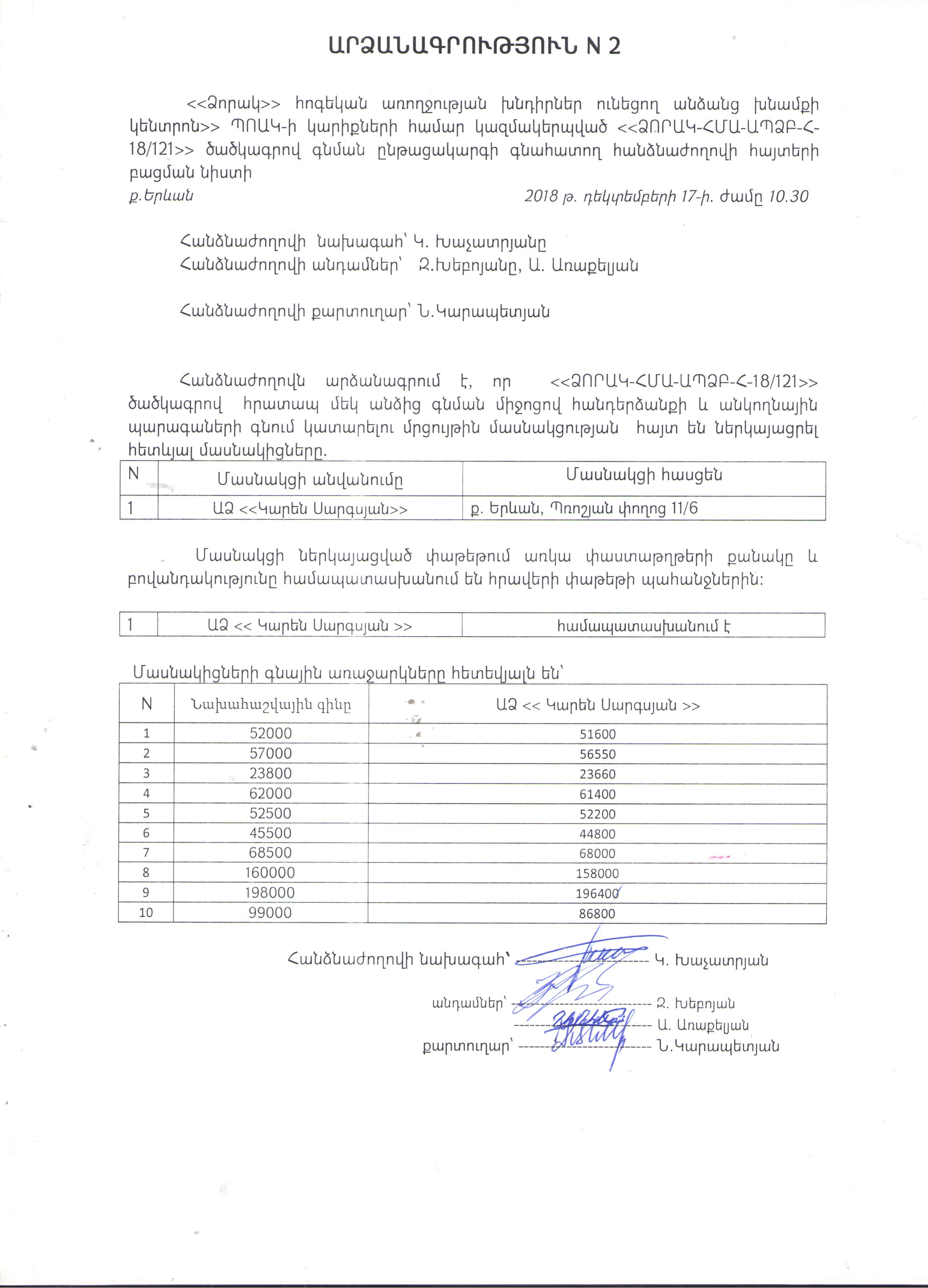 ԳԵՏ-ՀՄԱ-ԱՊՁԲ-15/11-18 ծածկագրով գնման ընթացակարգի գնահատող հանձնաժողովի բացման նիստի արձանագրություն