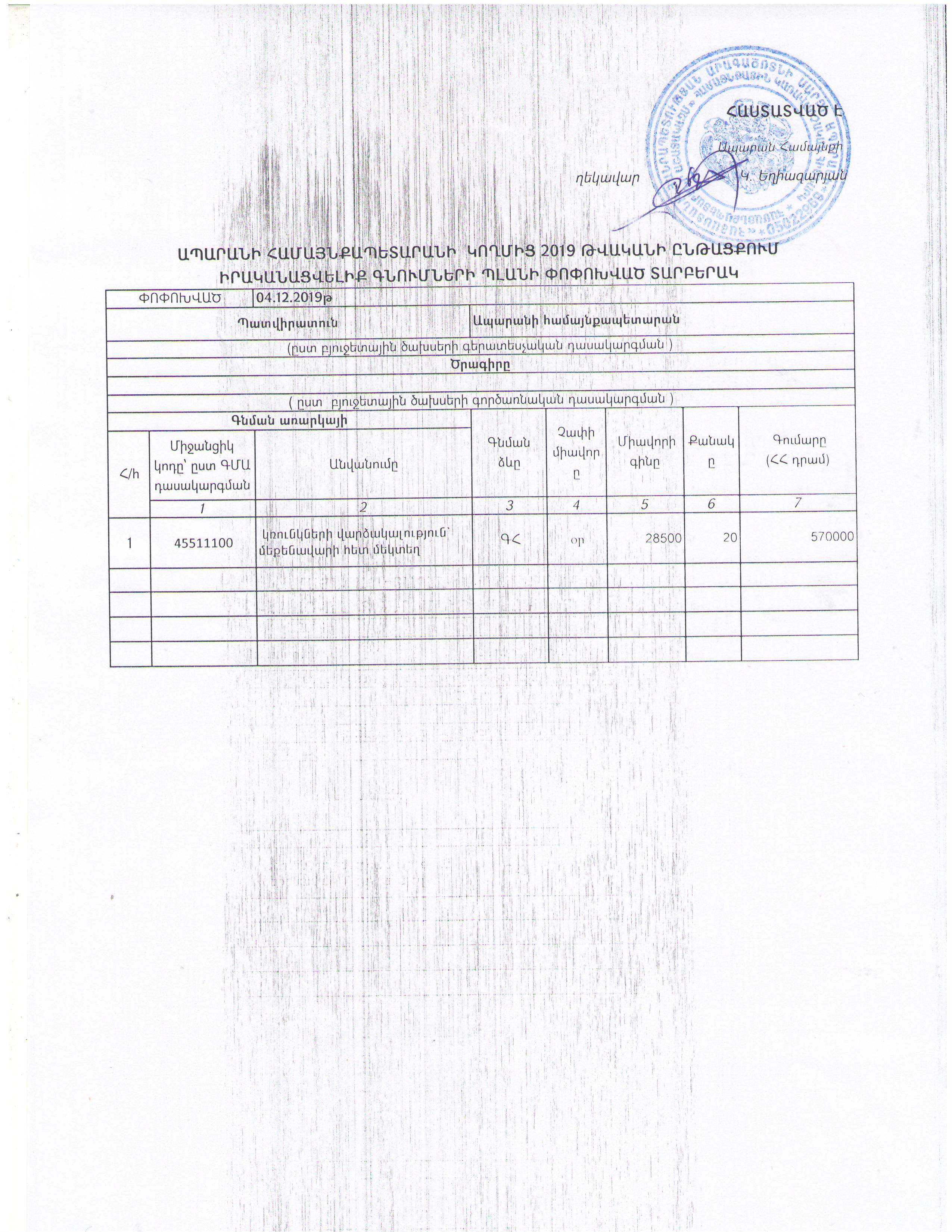 (Հրապարակված է 2019-12-12 09:26:32-ից անժամկետ)