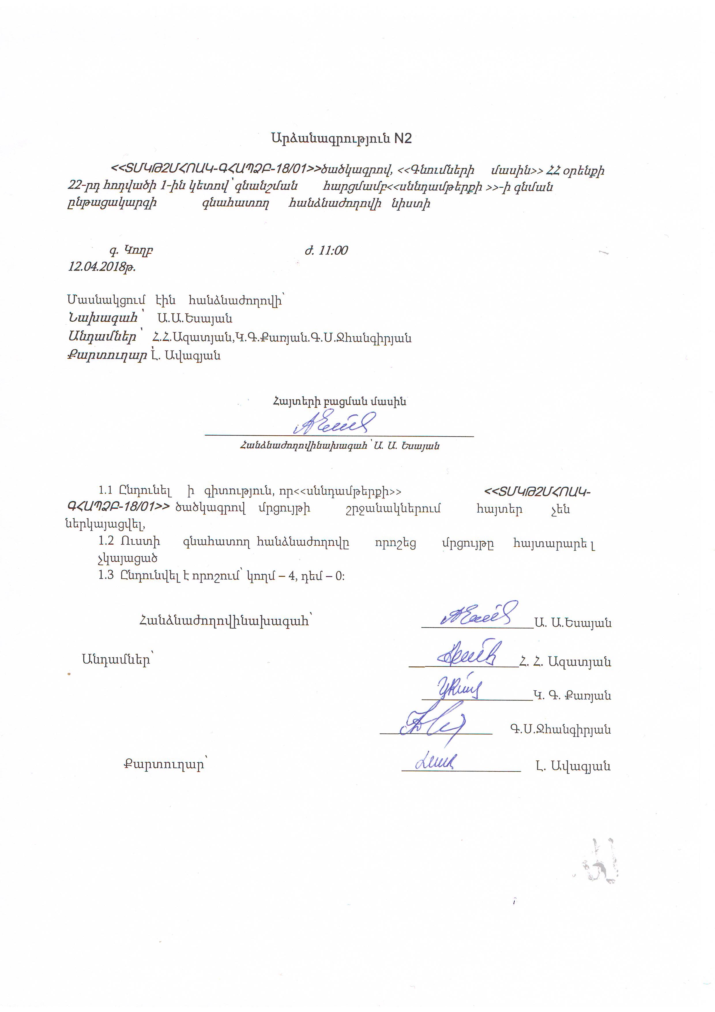 (Հրապարակված է 2018-04-16 18:20:58-ից անժամկետ)