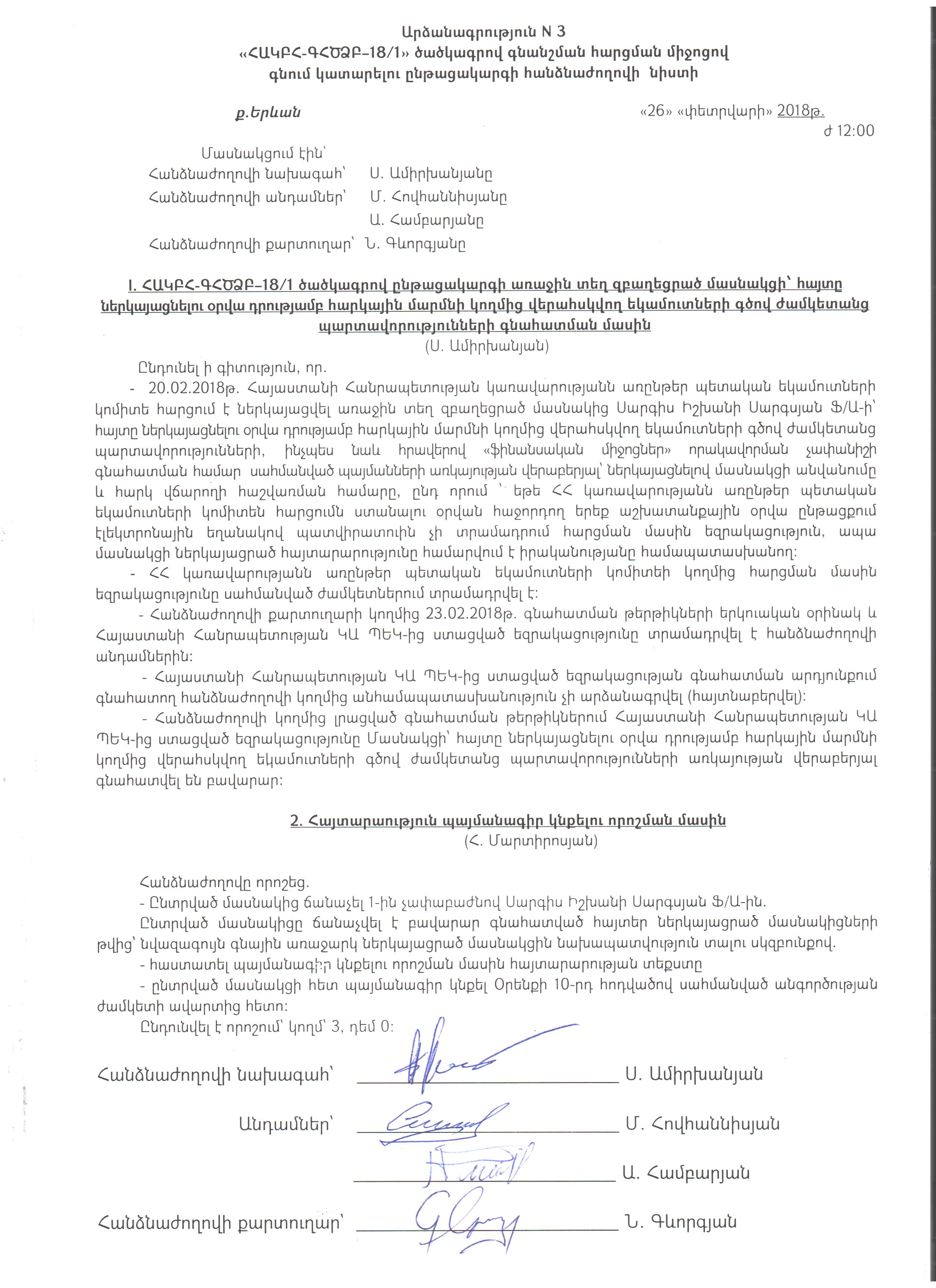 (Հրապարակված է 2018-02-26 17:33:07-ից անժամկետ)
