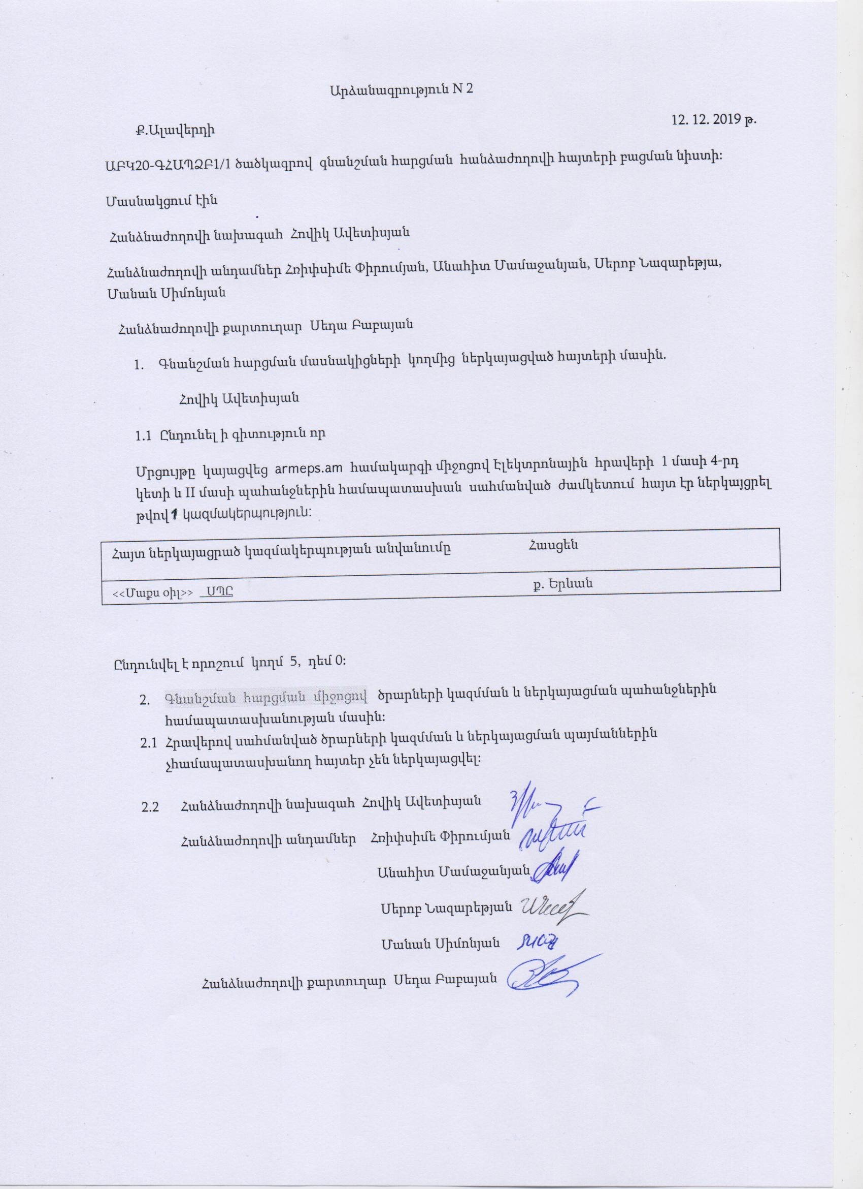 (Հրապարակված է 2019-12-16 16:53:29-ից անժամկետ)