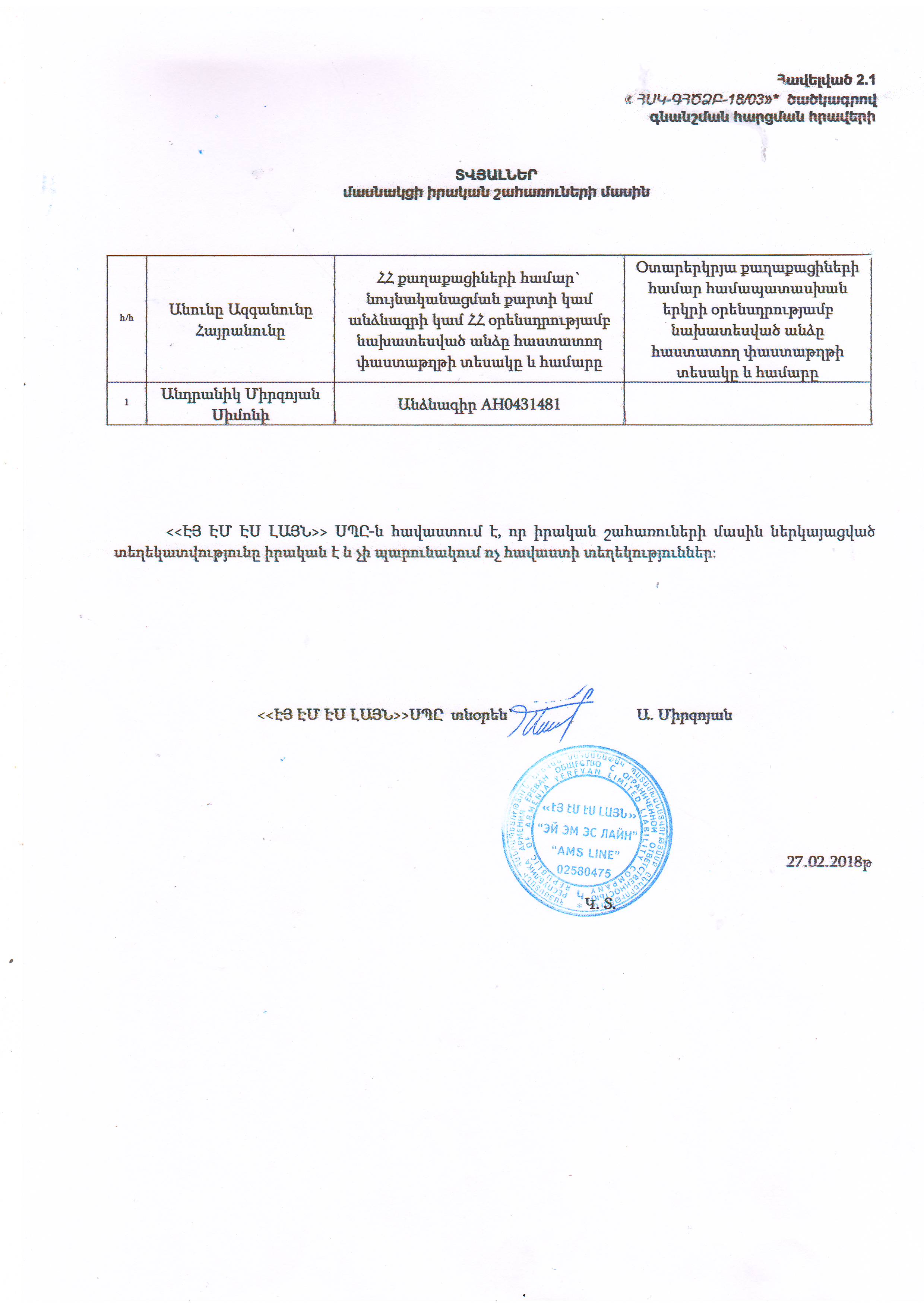 (Հրապարակված է 2018-03-01 11:40:00-ից անժամկետ)