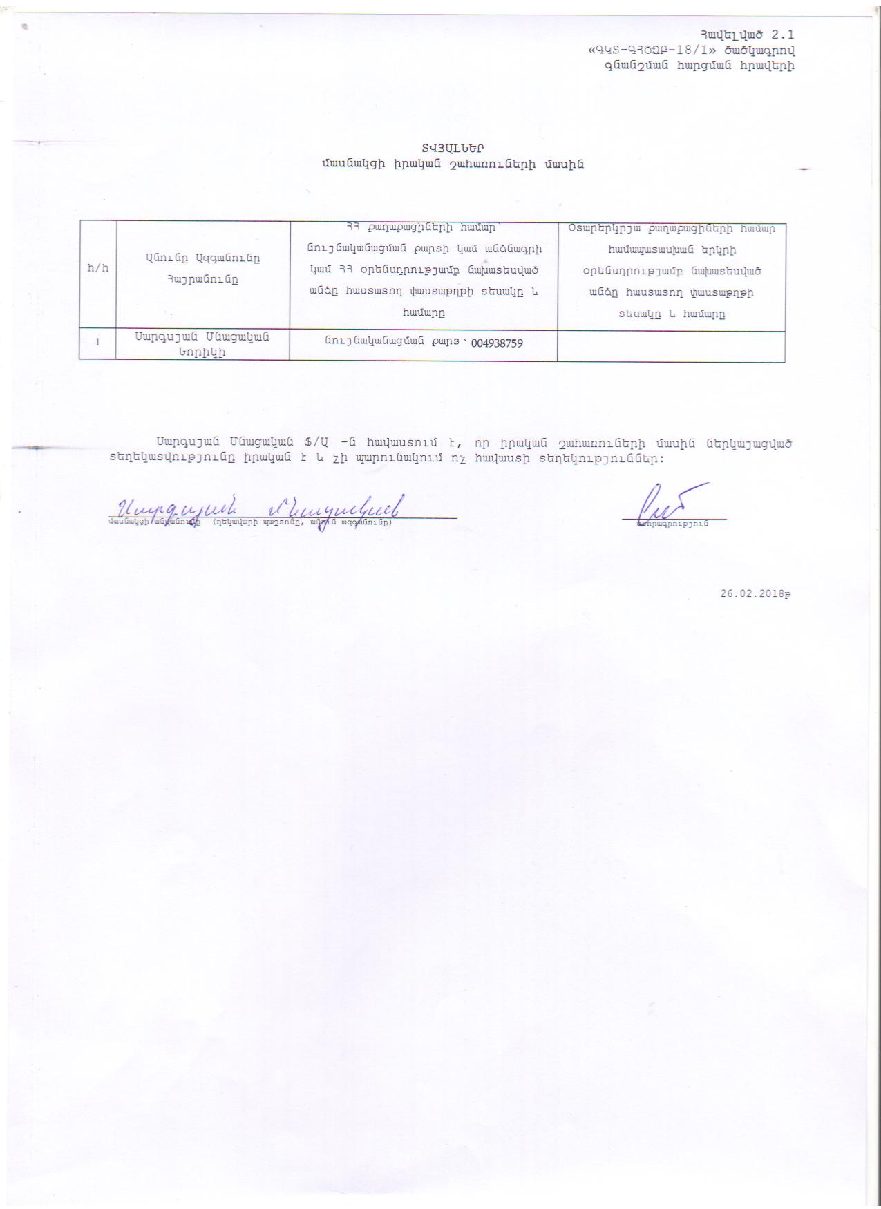 (Հրապարակված է 2018-02-28 16:12:00-ից անժամկետ)