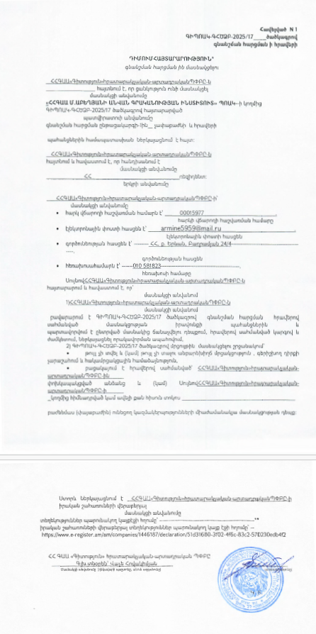 (Հրապարակված է 2025-11-06 10:08:59-ից անժամկետ)