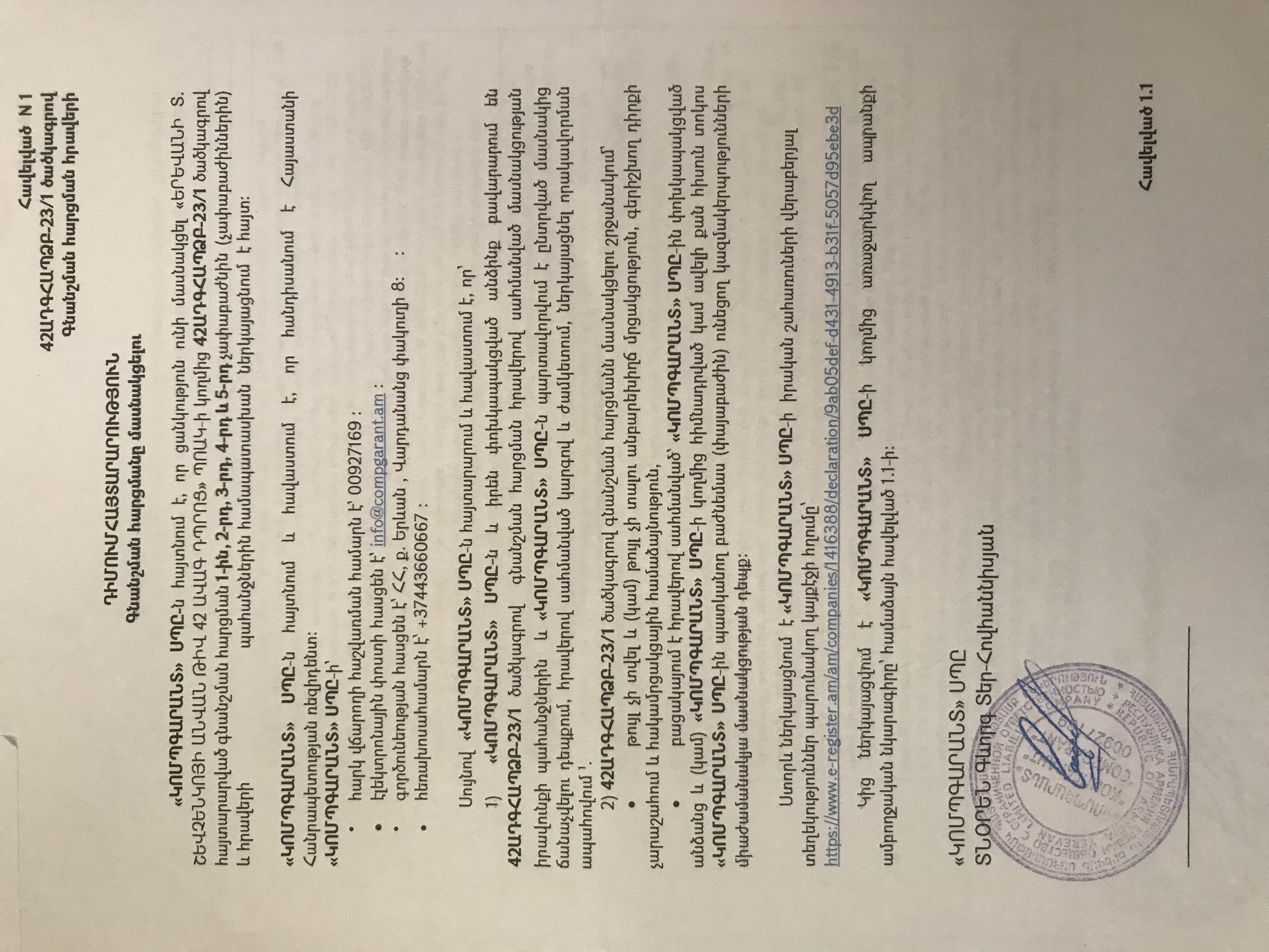 (Հրապարակված է 2023-03-03 16:05:27-ից անժամկետ)