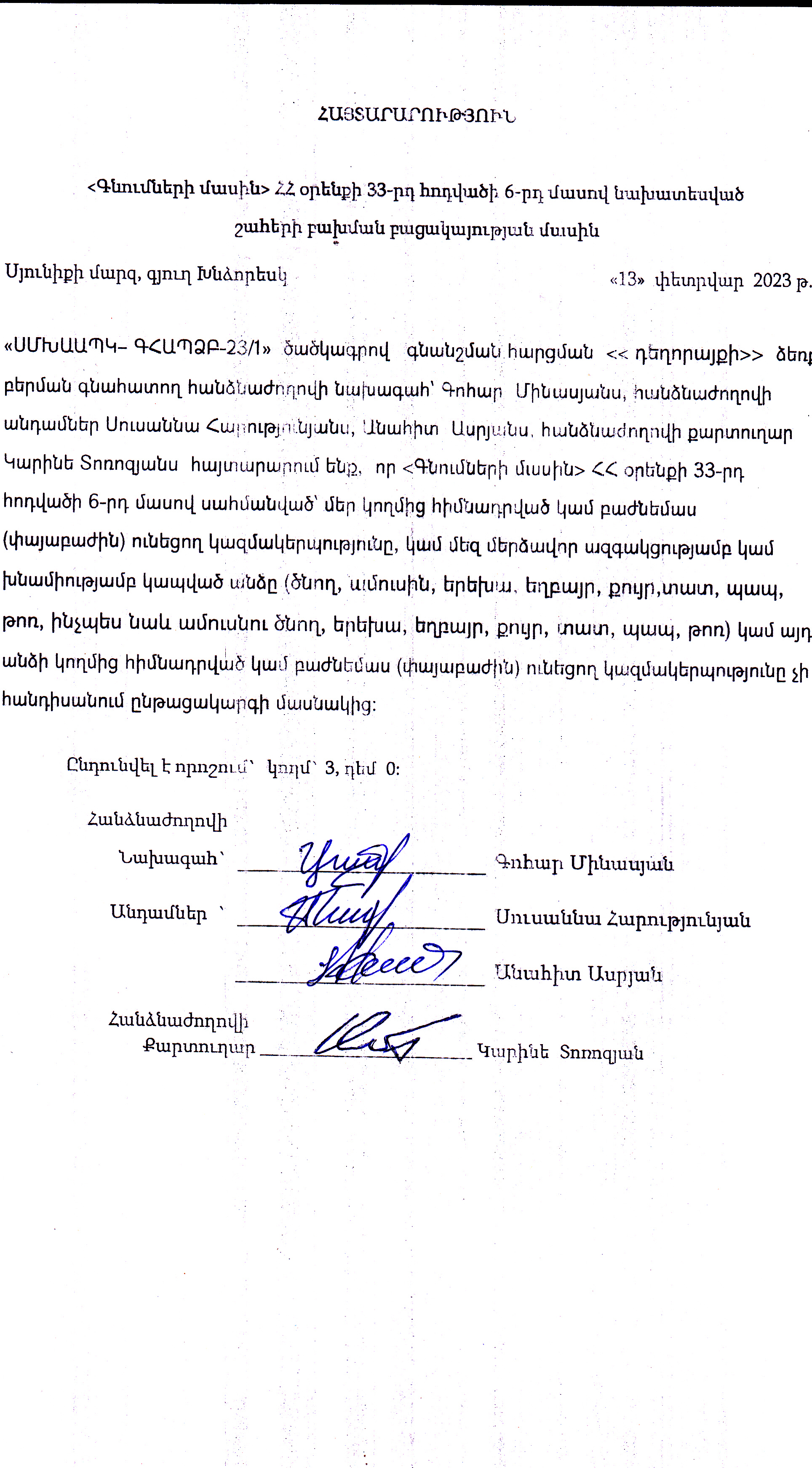 (Հրապարակված է 2023-02-15 15:05:00-ից անժամկետ)