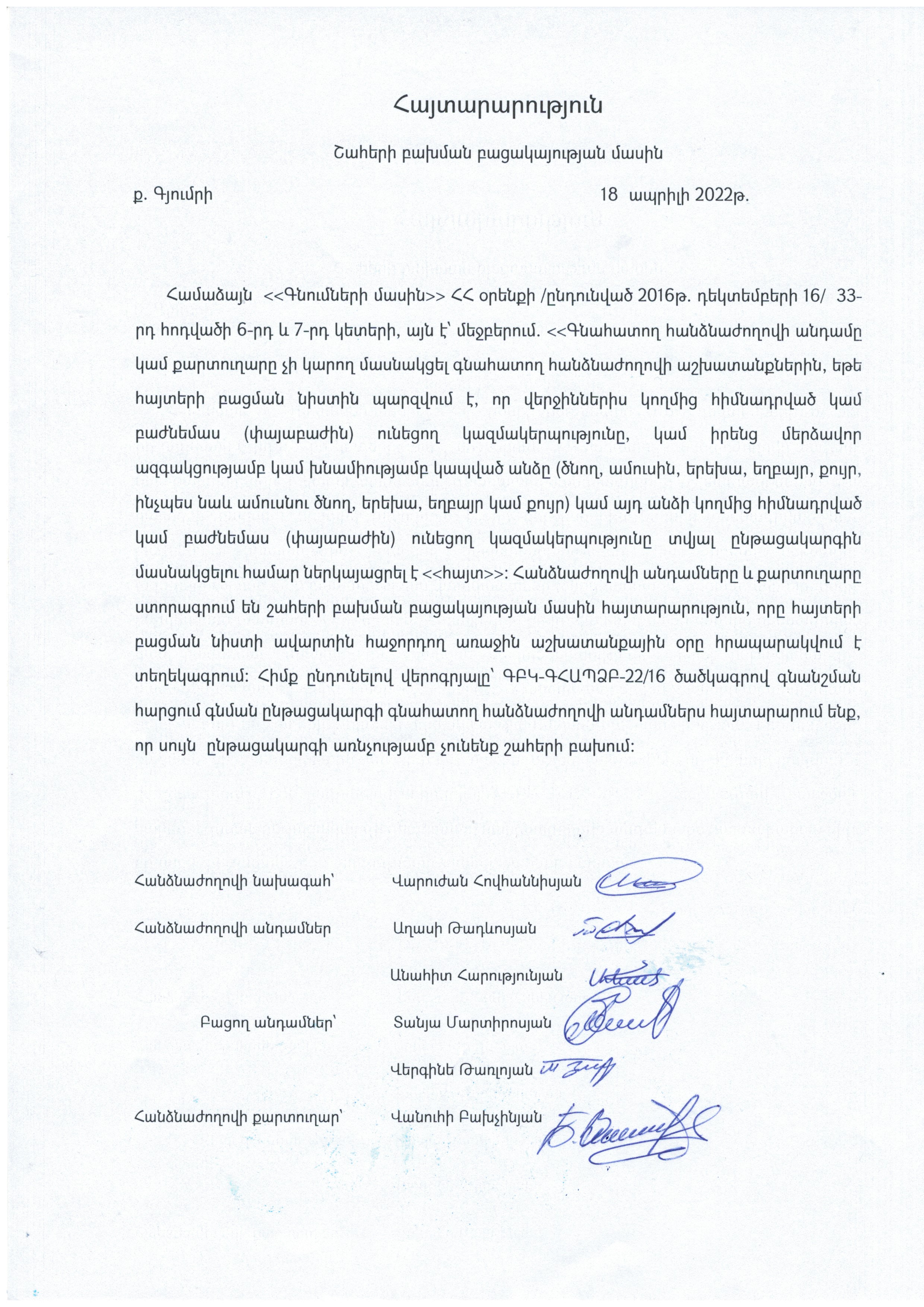 (Հրապարակված է 2022-04-21 17:12:35-ից անժամկետ)