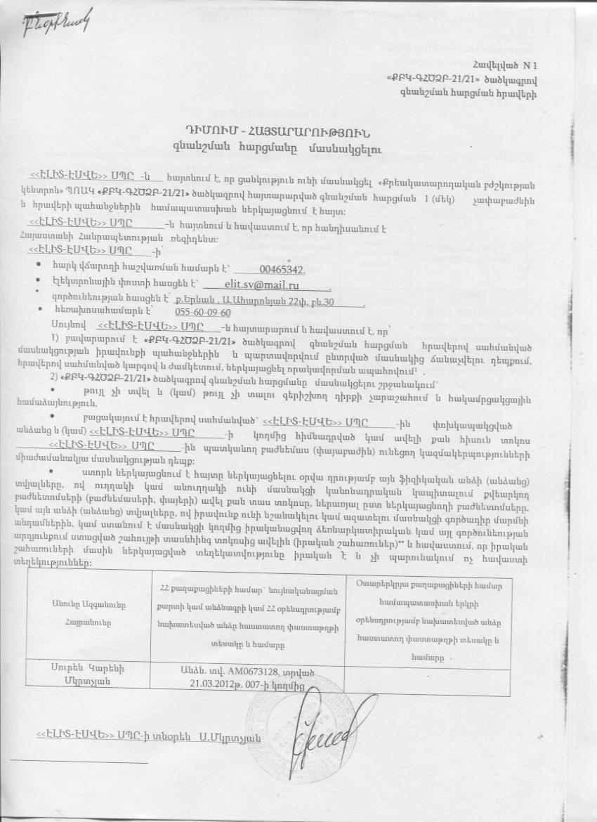 (Հրապարակված է 2021-06-30 11:45:57-ից անժամկետ)
