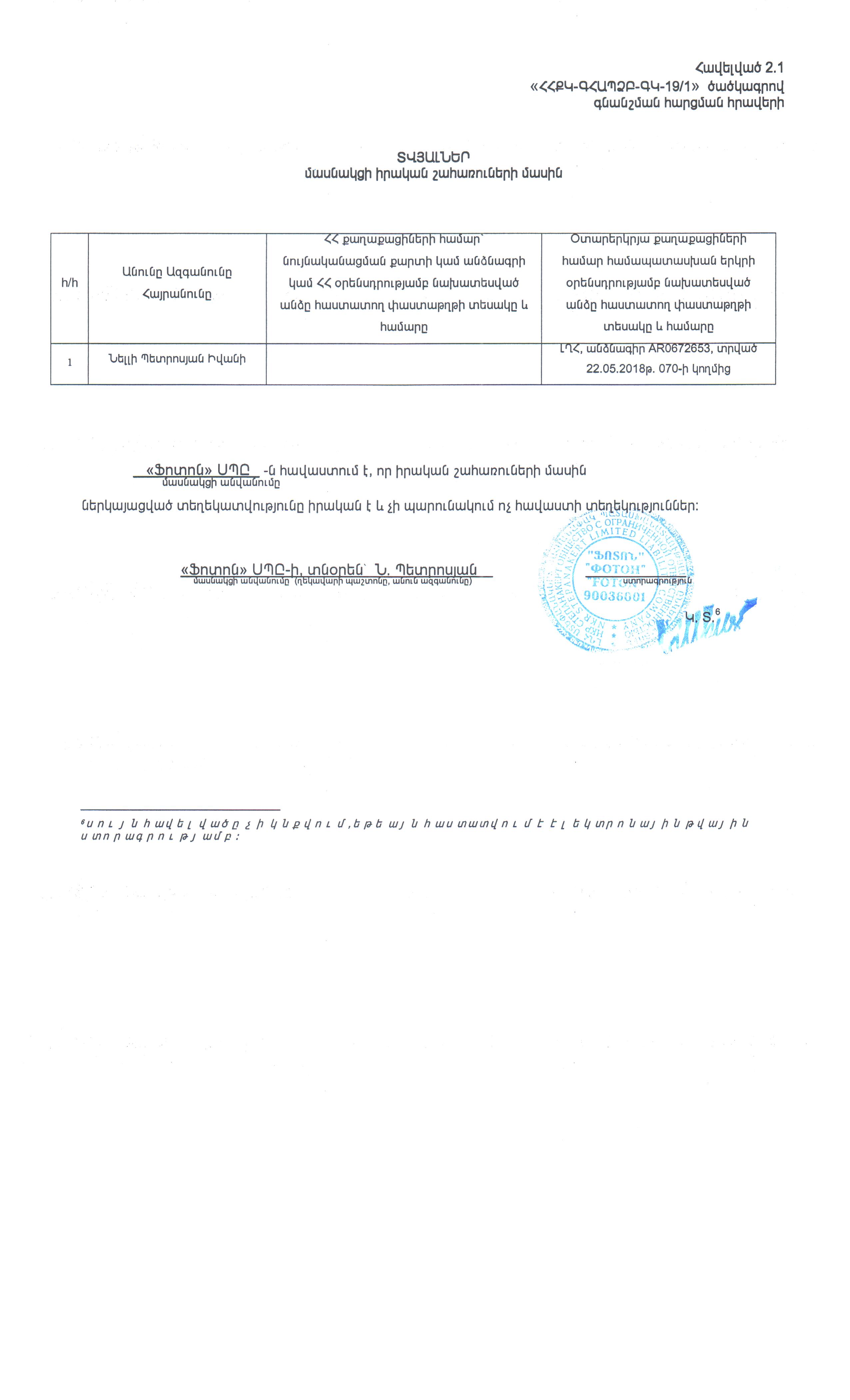 (Հրապարակված է 2019-06-07 17:11:51-ից անժամկետ)