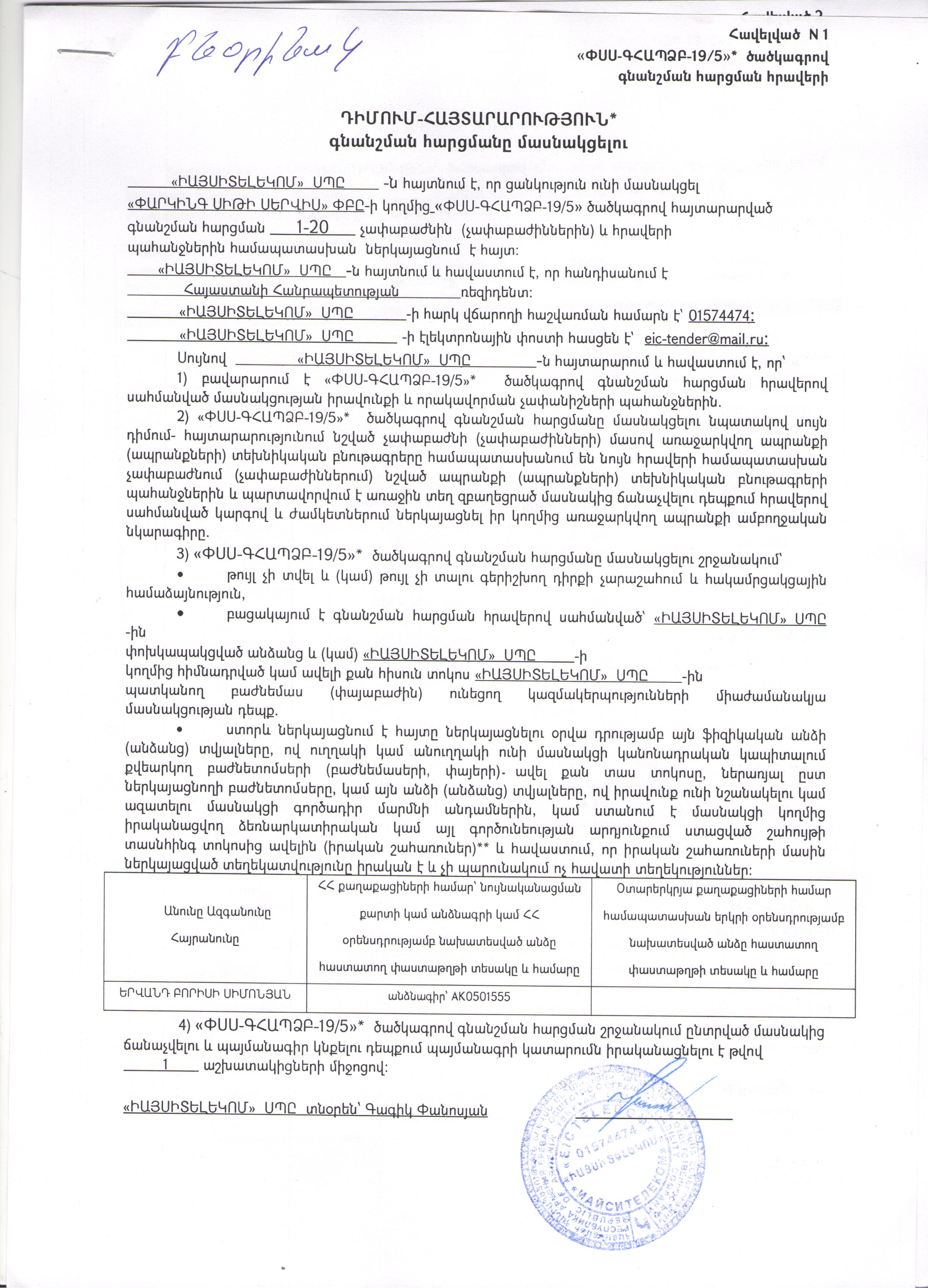 (Հրապարակված է 2019-07-19 12:02:27-ից անժամկետ)