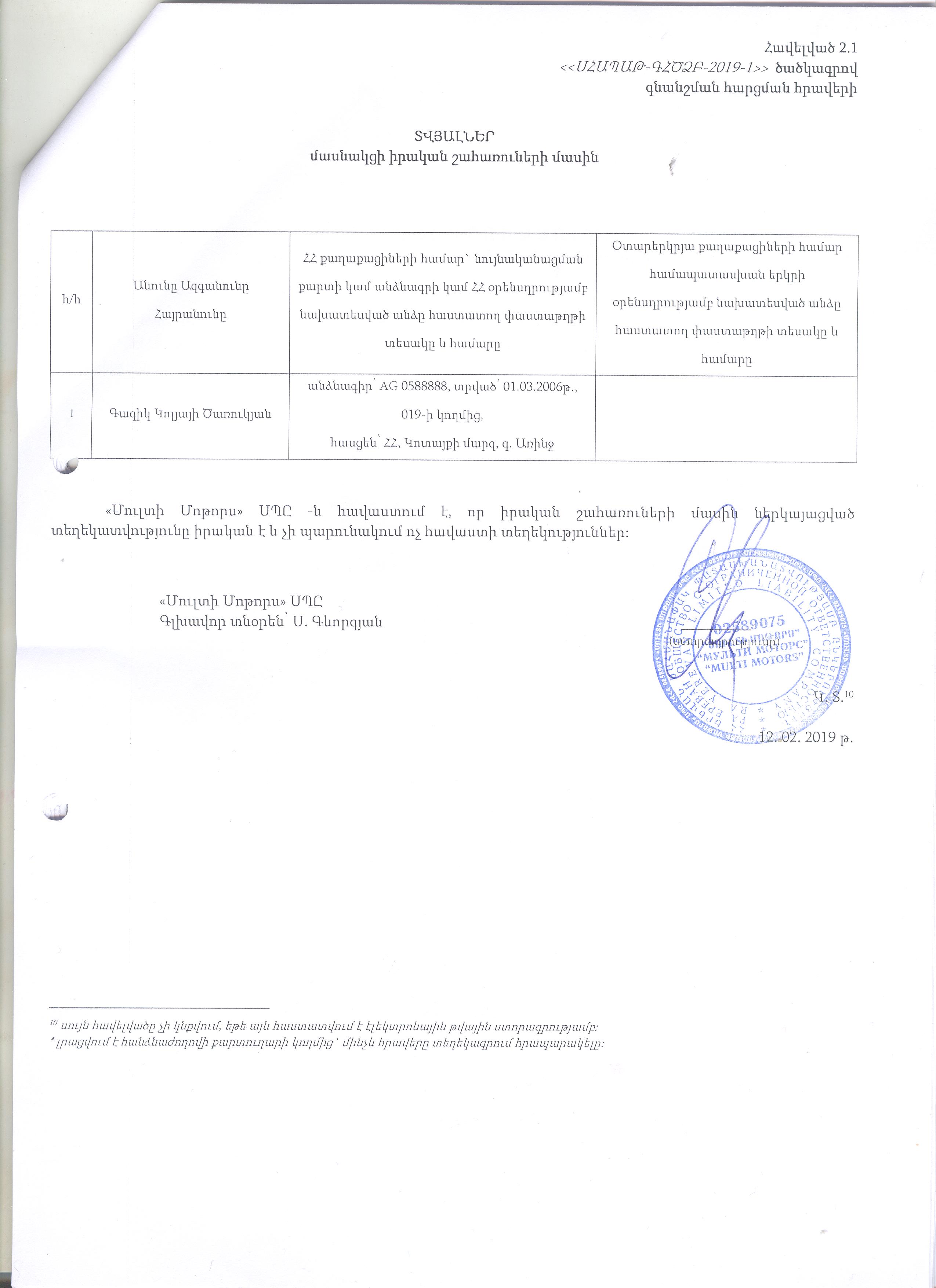 (Հրապարակված է 2019-02-27 09:45:00-ից անժամկետ)