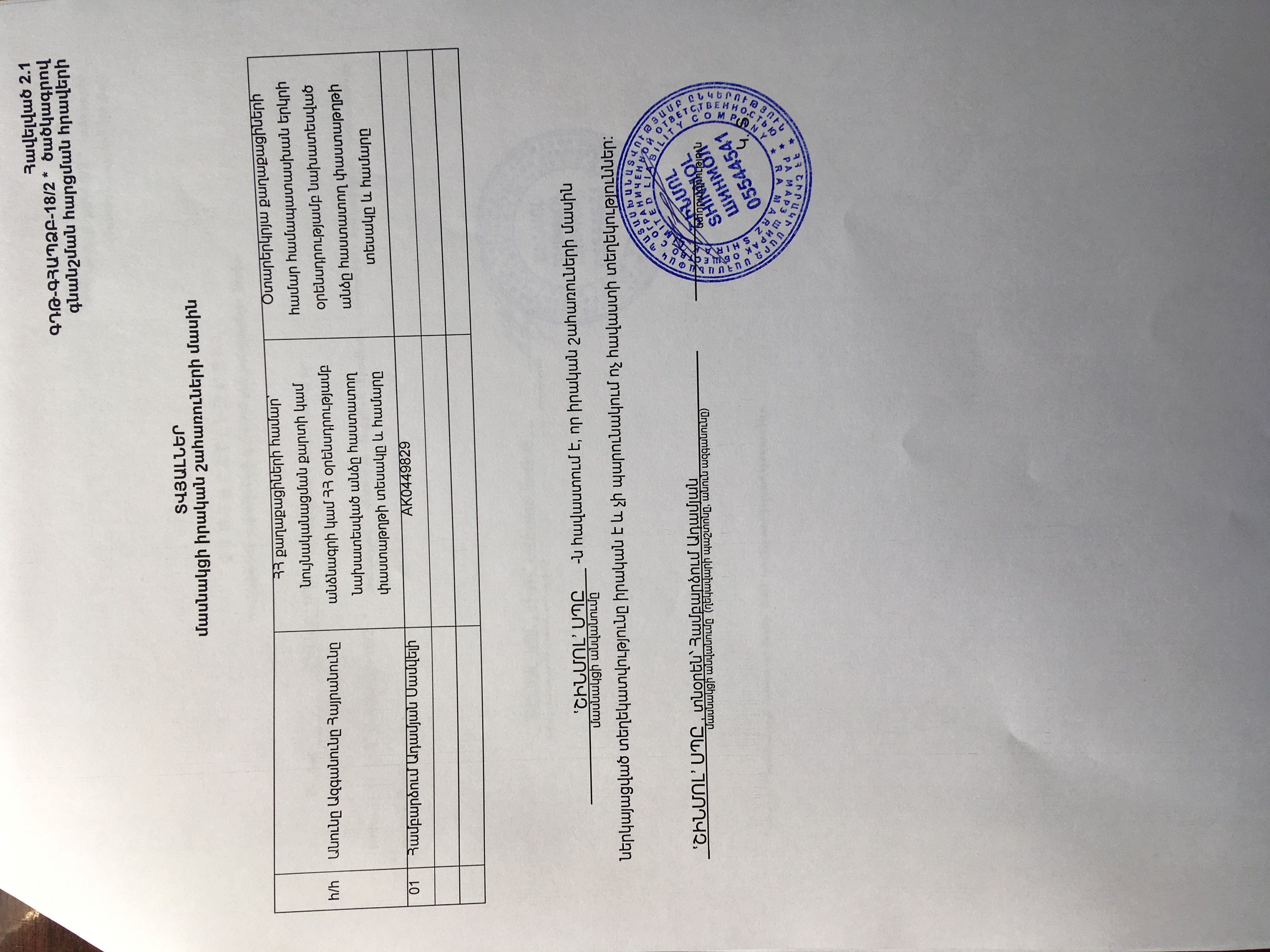 (Հրապարակված է 2018-08-22 10:01:54-ից անժամկետ)