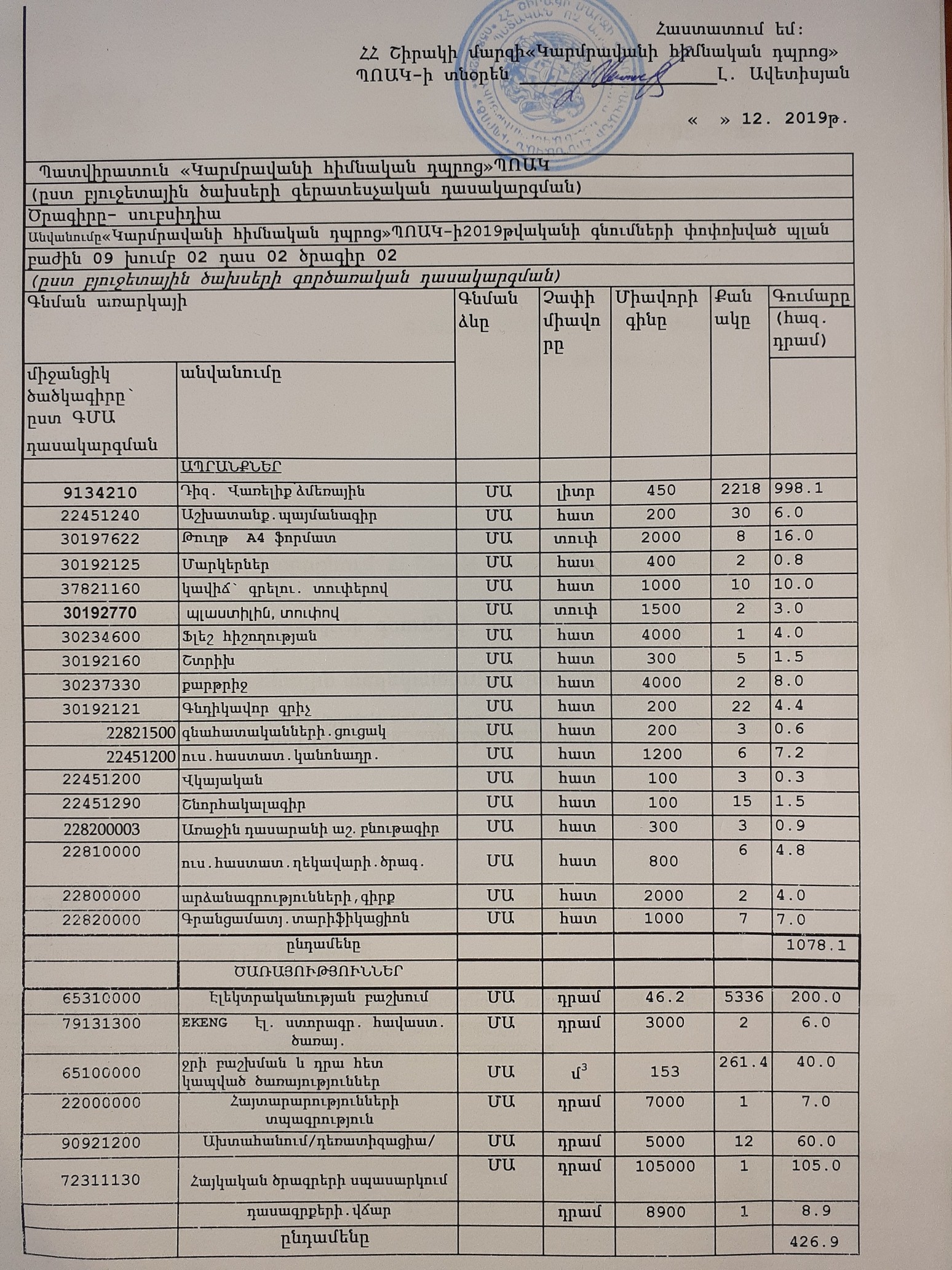 (Հրապարակված է 2020-01-23 16:33:24-ից անժամկետ)